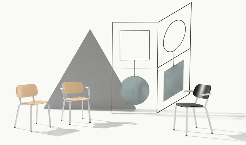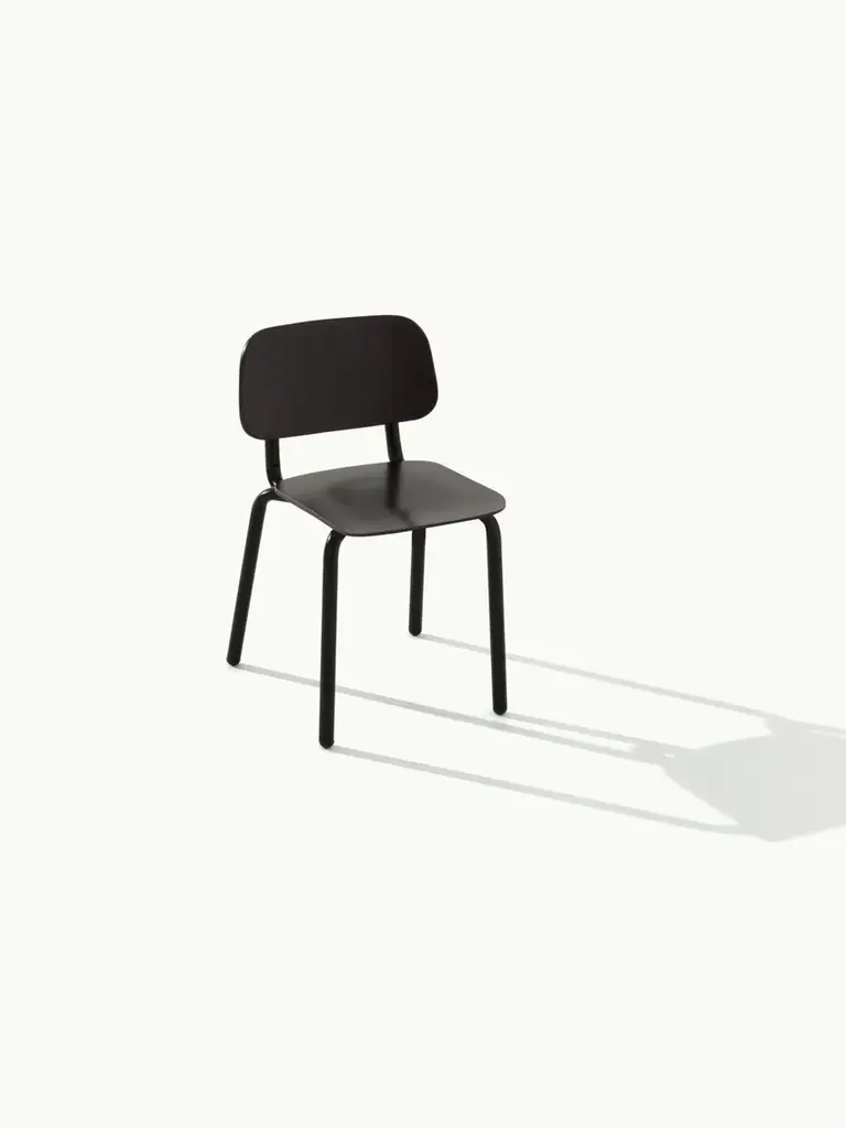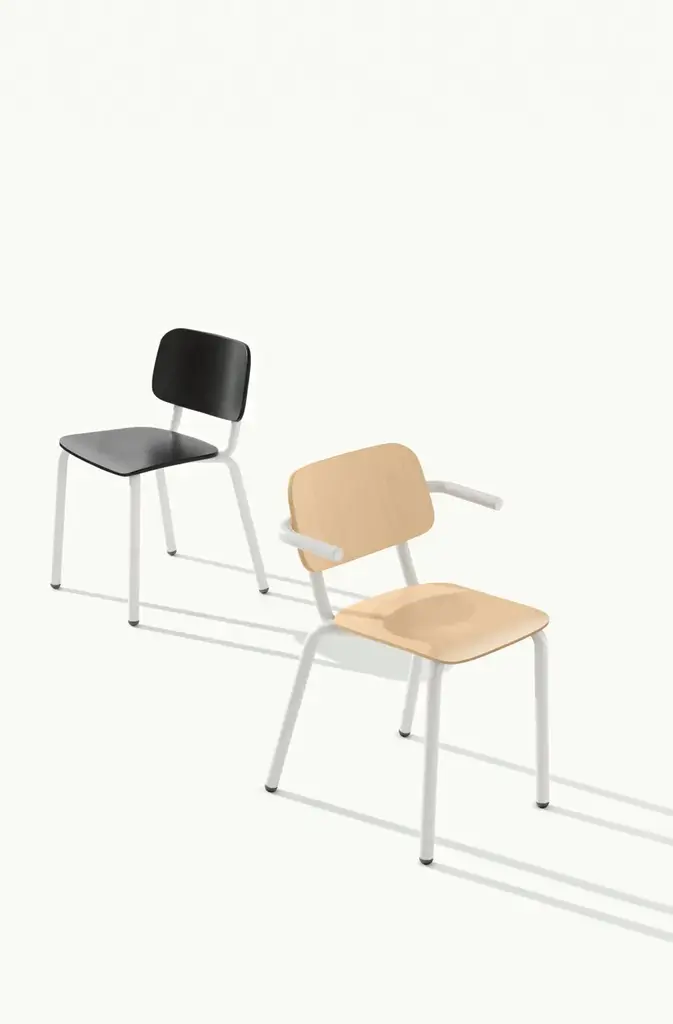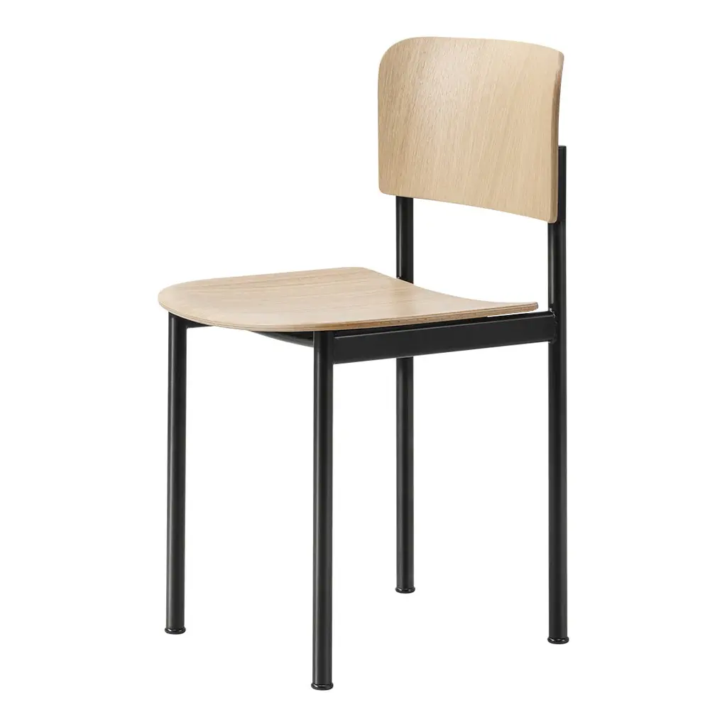 Hull is a chair with 4 legs steel frame. Beech wood seat and back (embossed finish).