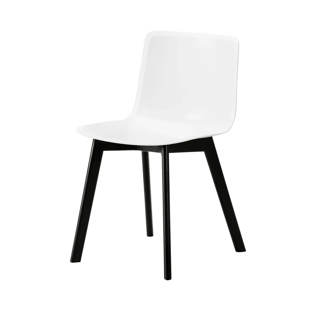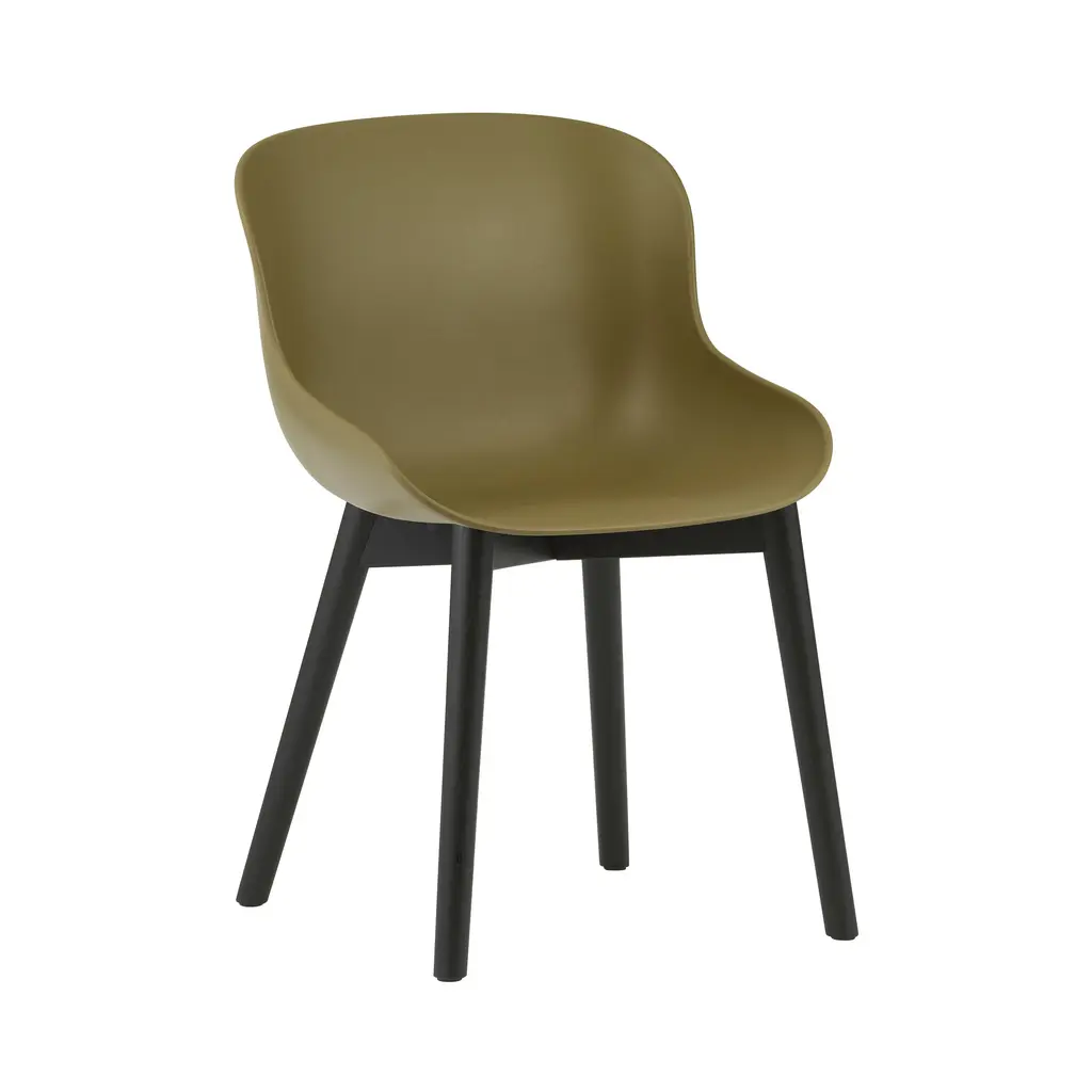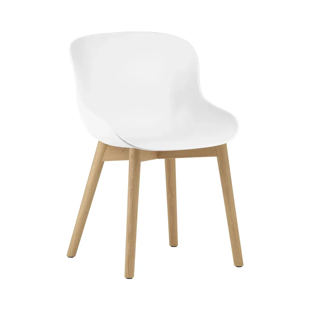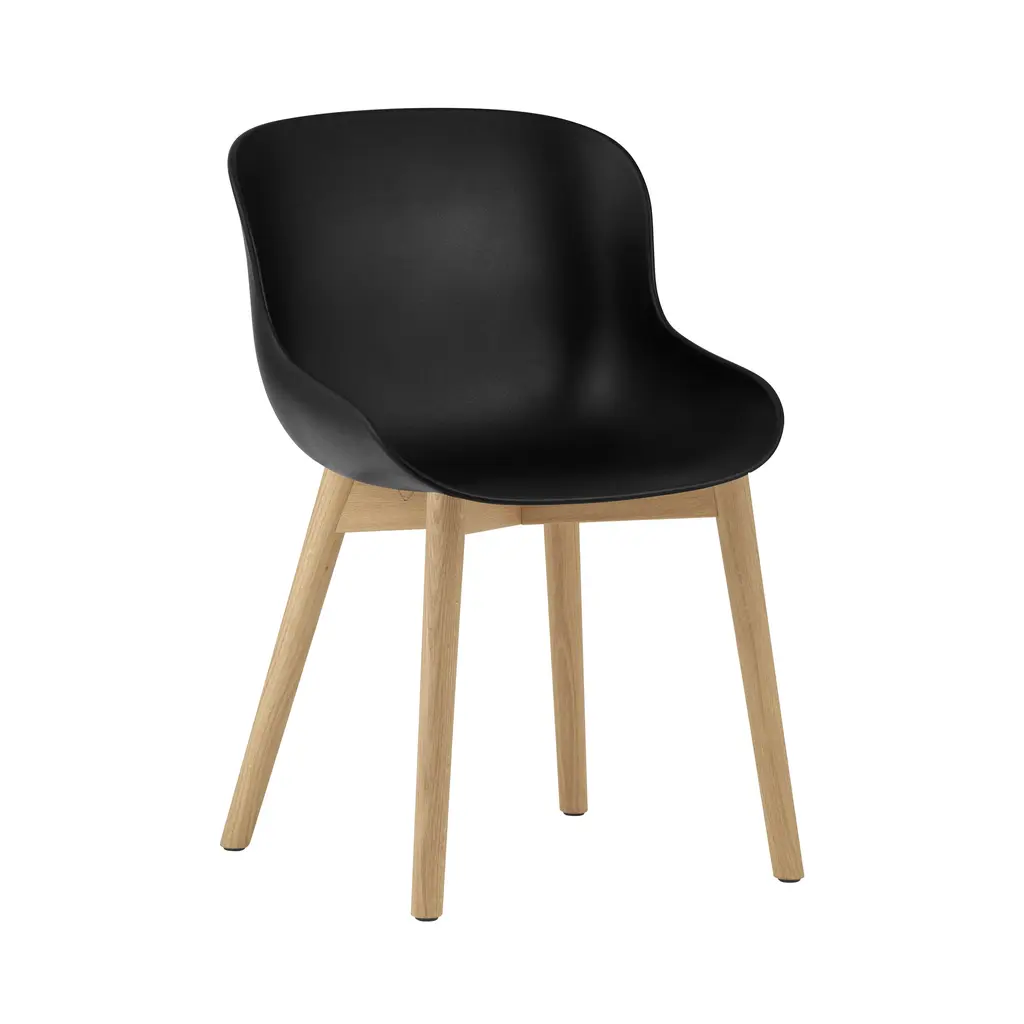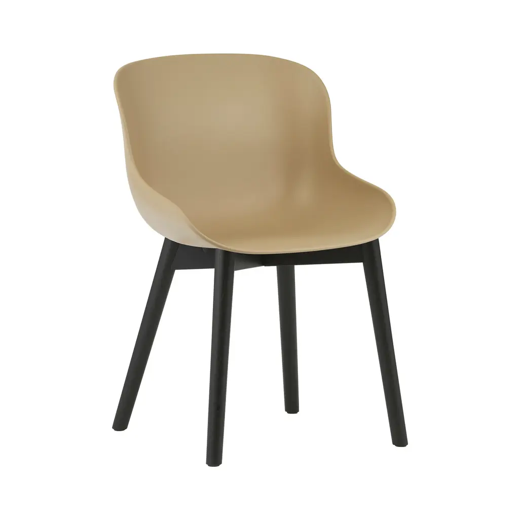 A wooden base brings an organic dimension to Hyg's embracingly sculpted contours with an ample seat and slightly higher curving sides. Designer Simon Legald's shell chair in pressed polypropylene has notably generous proportions that allow for a wide range of relaxed seating postures. Inspired by the Danish ideal of hygge, a feeling of contentment lingers in both the visual experience of the design and overall comfort.