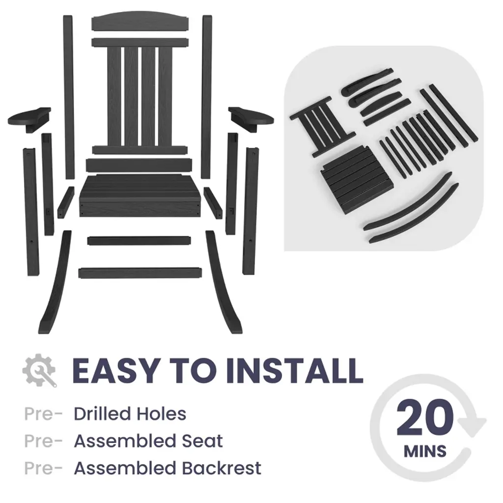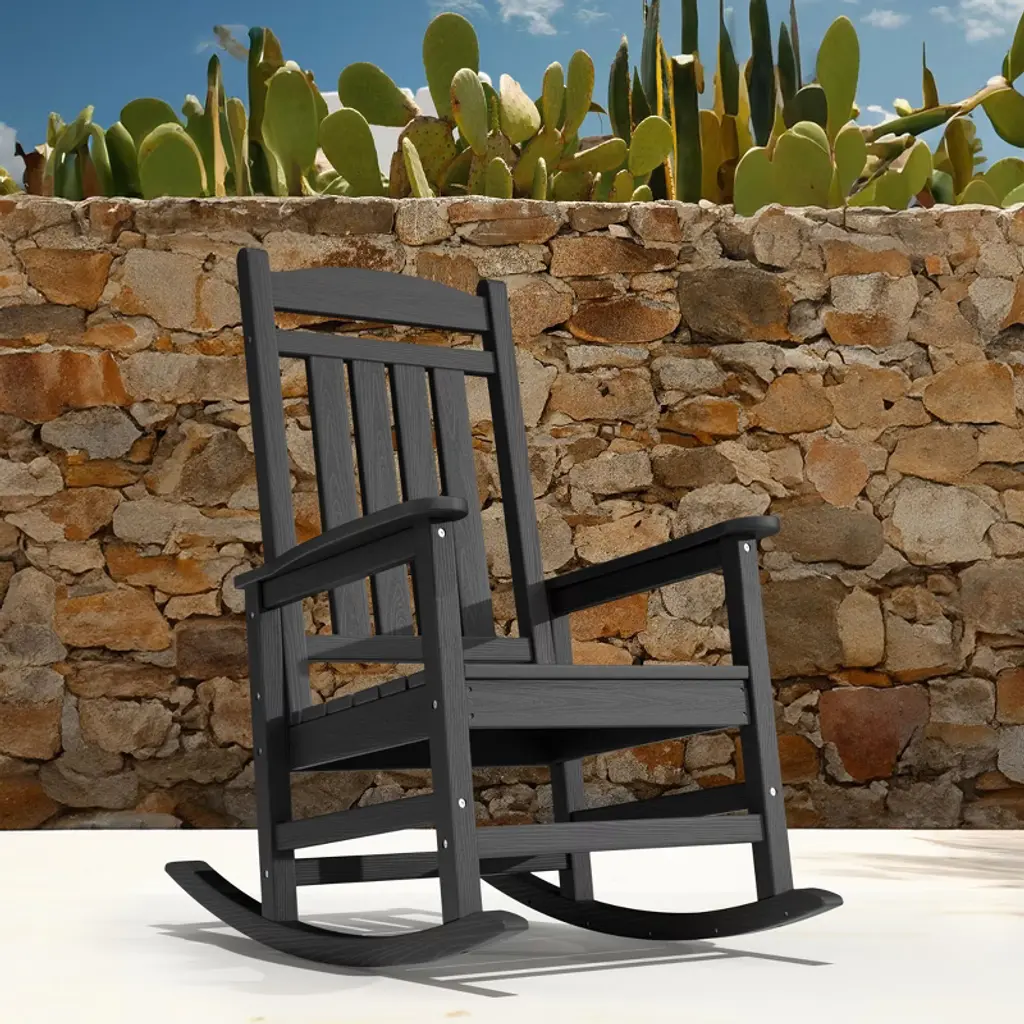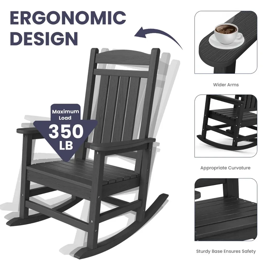 Hyleory Hdpe Patio Rocking Adirondack Chair, Extra Wide Outdoor Chair For All Seasons In Black