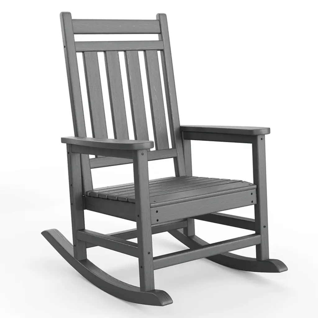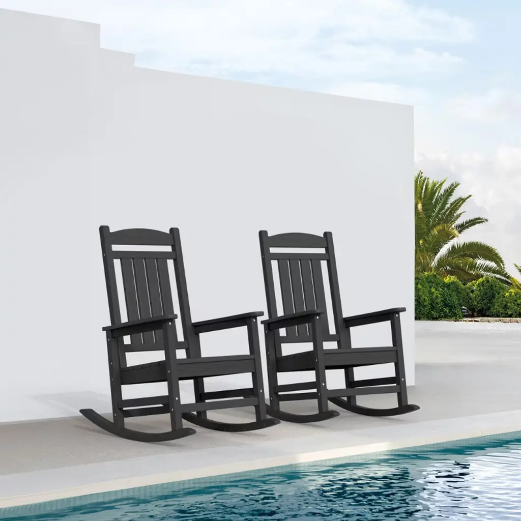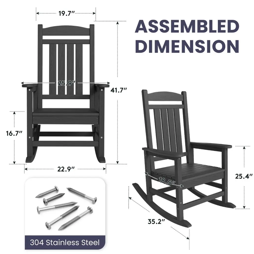 Hyleory Hdpe Patio Rocking Adirondack Chair, Extra Wide Outdoor Chair For All Seasons In Black