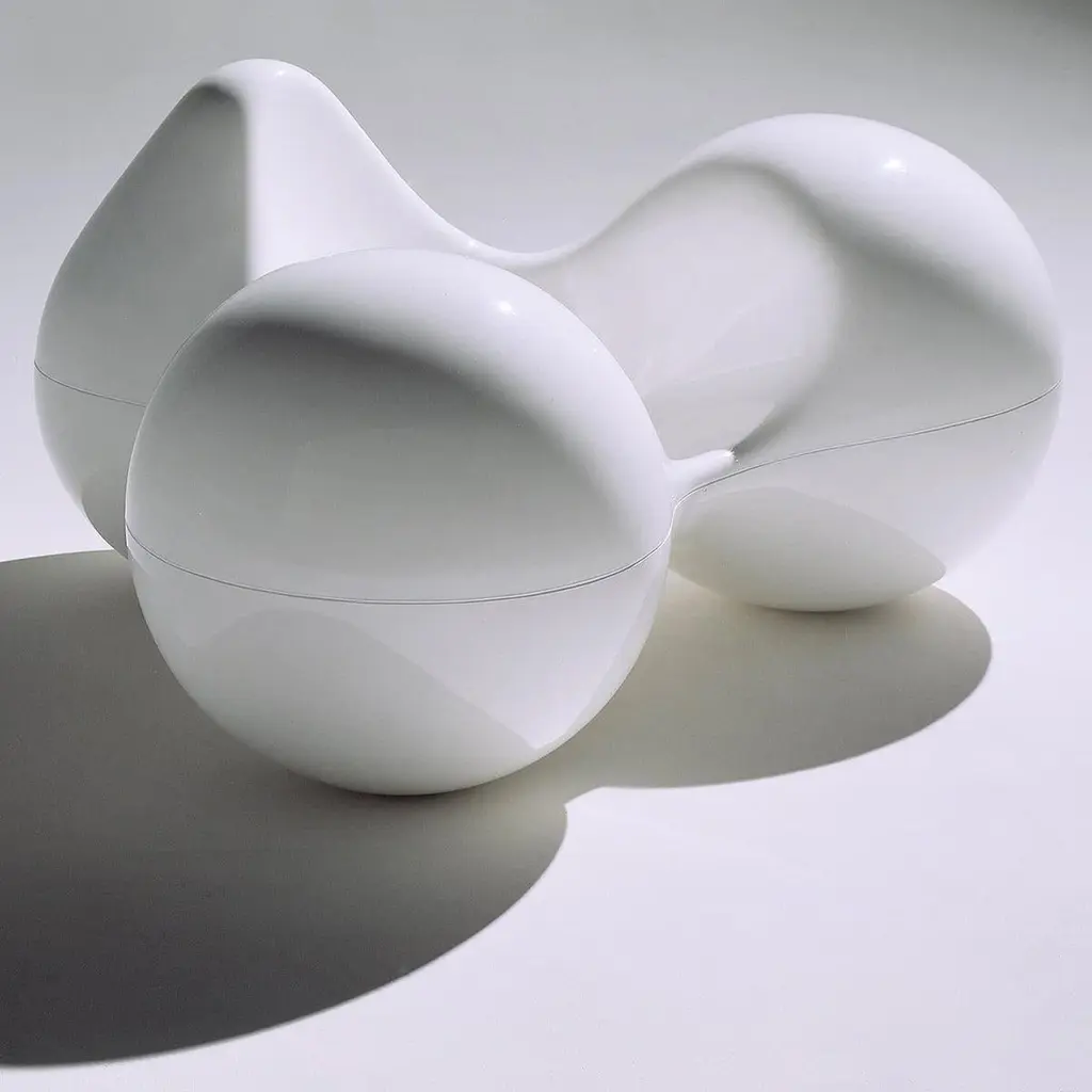 Eero has always been drawn to the circular form and is perhaps best known for his designs ‘without edges’. The Tomato chair combines three circles on a basic seat, with two as armrests, one stretched to be a comfortable back. It is made of fibreglass which makes it suitable for outdoor use as well. Tomato was designed in 1971 by Eero Aarnio.Fibreglass, Gelcoat finish.