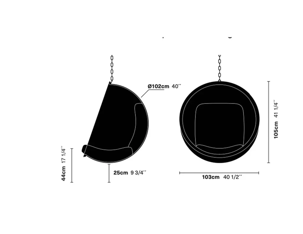 The bubble chair was designed by Eero Aarnio in 1968. According to Eero’s notes, the bubble hangs from the ceiling because ‘there is no nice way to make a clear pedestal.’ It shares the same unique acoustics as the ball chair, a little cocoon that shields off the outside world.The hanging bubble chair is made from acrylic and solid stainless steel, and is available in four different leather options by Sørensen Leather.We are happy to provide you leather samples to help you decide the perfect color for your bubble.Dimensions: 103 cm width x 90 cm depth x 105 cm heightMaterials: Acrylic, solid stainless steel, natural leatherChain is 2 meters longAs a young boy Eero Aarnio had been fascinated by soap bubbles. In the city he had never made one but fleeing the war to the countryside he remembers blowing huge soap bubbles from a barn. The bubbles would take off with the wind and drift far away to the fields. The image of a field filled with transparent soap bubbles stuck with him.
