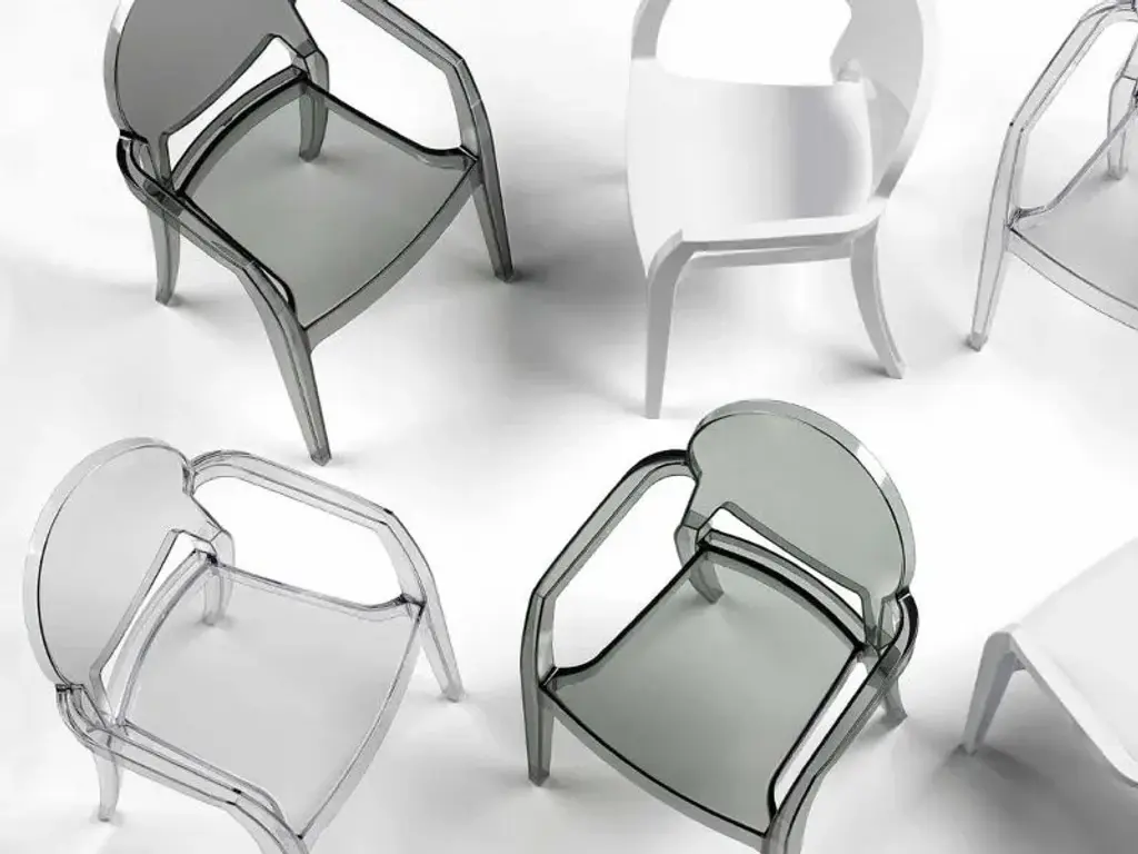 IGLOO - Stackable chair. Polycarbonate frame with various colour solutions, for both the transparent and the solid colour version.For indoor/outdoor use. Size: W45 D52 Hs46 H87 cm .
