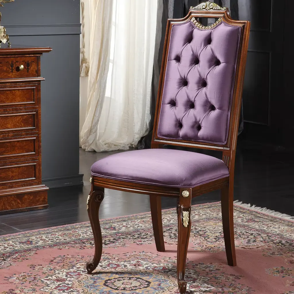 Handcrafted in Verona, the heart of traditional Italian furniture production, the Impero Armchair embodies centuries of tradition, making it a seamless addition to a regal space. On a solid beechwood frame, the armchair with imperial inspiration is completed with gold leaf detailing. The chair is padded, upholstered and completed with Chesterfield button work.