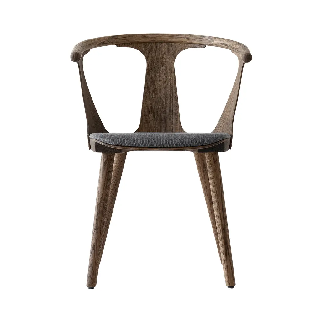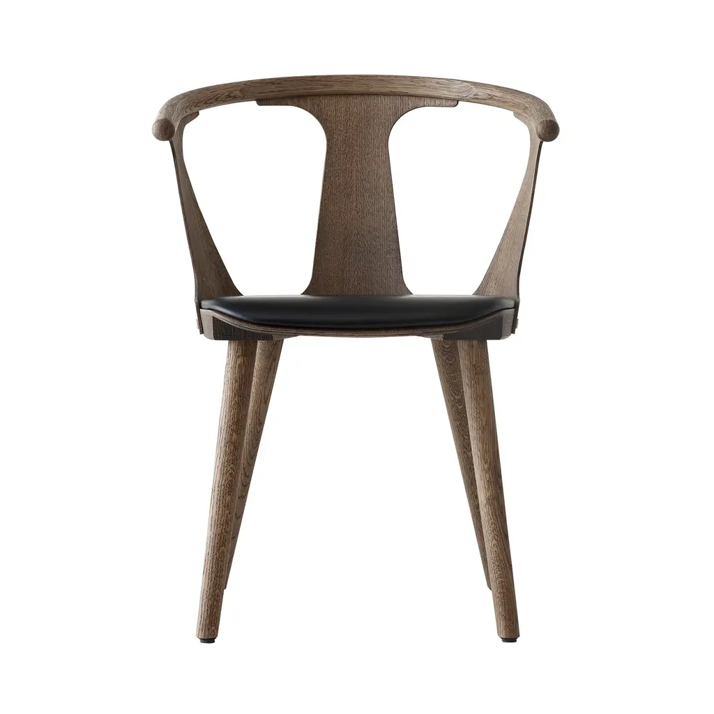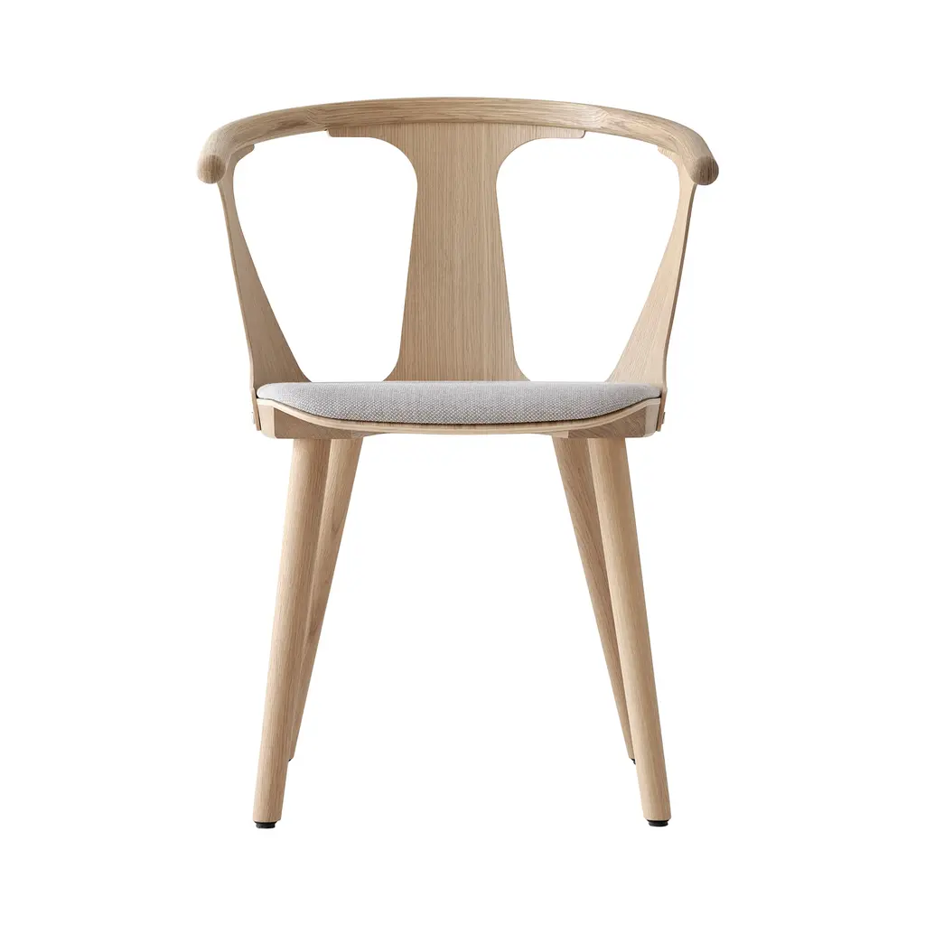 The first wooden chair in &Tradition's lineup, Sami Kallio's head-turning In Between, gets a variation with an upholstered seat for additional comfort without compromising the chair's light and elegant expression. Helsinki-born Sam's design reflects its perfect balance between methods of manufacturing, design and aesthetics. It's produced by way of hand and machine. There is the wood turning, a classic technique using a lathe for greater detail. Compression molding is also applied, allowing for strength despite the lightness of the thin frame. It's no accident that ash and oak, which Sam uses for this chair, respond very well to these techniques. Dynamically angled legs provide balance and equilibrium of form to the low-swung, crescent back, the armrest and very slightly pitched seat pan. The back and side panels offer solid support and a visual interplay of positive and negative space that further illustrates the In Between notion.If the semicircular rail brings to mind that 1949 Danish icon the Wishbone Chair (a.k.a. the Y Chair), Sam freely admits his regard for designer master Hans Wegner. Yet Sam also pushes his In Between forward with a more graphic, modular and lighter form.In Between is part of the "Between Gaps" series by this award-winning designer, who is now based in in Gothenburg, Sweden, and is produced by &Tradition in Copenhagen.