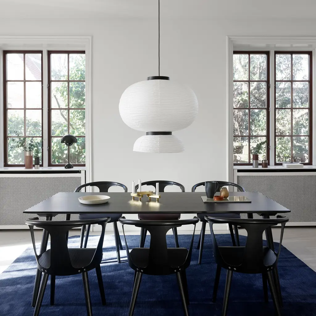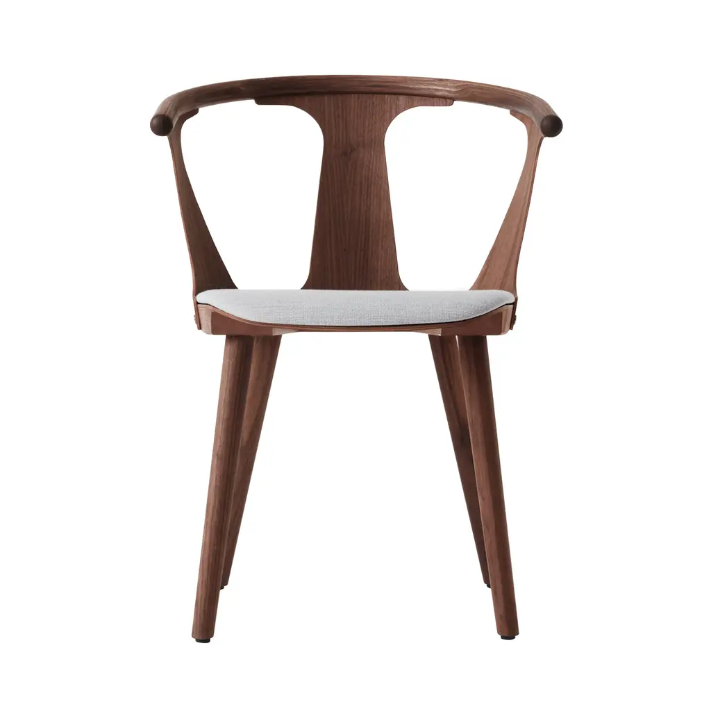 The first wooden chair in &Tradition's lineup, Sami Kallio's head-turning In Between, gets a variation with an upholstered seat for additional comfort without compromising the chair's light and elegant expression. Helsinki-born Sam's design reflects its perfect balance between methods of manufacturing, design and aesthetics. It's produced by way of hand and machine. There is the wood turning, a classic technique using a lathe for greater detail. Compression molding is also applied, allowing for strength despite the lightness of the thin frame. It's no accident that ash and oak, which Sam uses for this chair, respond very well to these techniques. Dynamically angled legs provide balance and equilibrium of form to the low-swung, crescent back, the armrest and very slightly pitched seat pan. The back and side panels offer solid support and a visual interplay of positive and negative space that further illustrates the In Between notion.If the semicircular rail brings to mind that 1949 Danish icon the Wishbone Chair (a.k.a. the Y Chair), Sam freely admits his regard for designer master Hans Wegner. Yet Sam also pushes his In Between forward with a more graphic, modular and lighter form.In Between is part of the "Between Gaps" series by this award-winning designer, who is now based in in Gothenburg, Sweden, and is produced by &Tradition in Copenhagen.