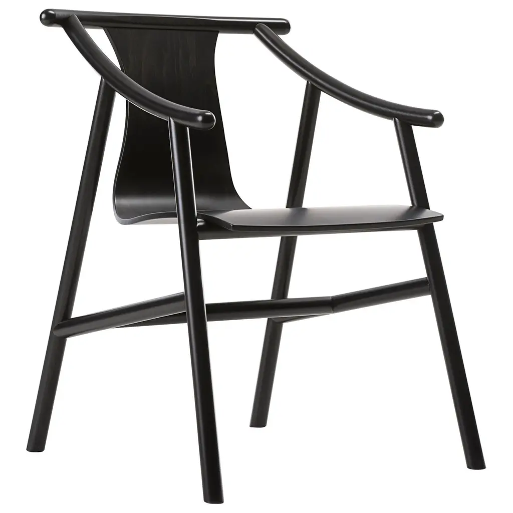 The first wooden chair in &Tradition's lineup, Sami Kallio's head-turning In Between, gets a variation with an upholstered seat for additional comfort without compromising the chair's light and elegant expression. Helsinki-born Sam's design reflects its perfect balance between methods of manufacturing, design and aesthetics. It's produced by way of hand and machine. There is the wood turning, a classic technique using a lathe for greater detail. Compression molding is also applied, allowing for strength despite the lightness of the thin frame. It's no accident that ash and oak, which Sam uses for this chair, respond very well to these techniques. Dynamically angled legs provide balance and equilibrium of form to the low-swung, crescent back, the armrest and very slightly pitched seat pan. The back and side panels offer solid support and a visual interplay of positive and negative space that further illustrates the In Between notion.If the semicircular rail brings to mind that 1949 Danish icon the Wishbone Chair (a.k.a. the Y Chair), Sam freely admits his regard for designer master Hans Wegner. Yet Sam also pushes his In Between forward with a more graphic, modular and lighter form.In Between is part of the "Between Gaps" series by this award-winning designer, who is now based in in Gothenburg, Sweden, and is produced by &Tradition in Copenhagen.