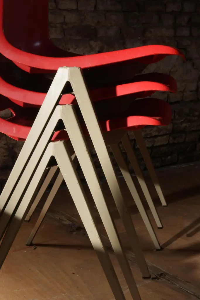 Industrial Piramid Stacking, School Chairs Galvanitas S22 Prouve Style
