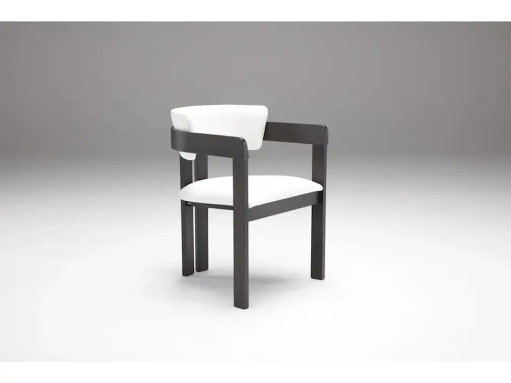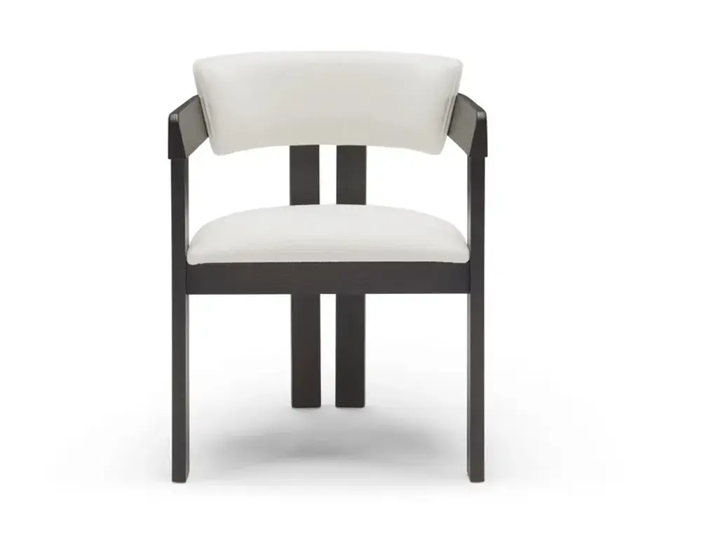 INES is a chair with armrests, featuring clean lines and timeless style.The Ines chairs and armchairs combine elegance, comfort, and durability in a perfect synthesis of aesthetics and functionality.The wooden frame enhances the handcrafted quality of the piece, while the upholstered seat and backrest—available in fabric, leather, or faux leather—offer a welcoming and supportive feel.Ideal for adding character to both living spaces and work environments, Ines seating stands out for its versatility and refined design, seamlessly fitting into both classic and contemporary settings. With Ines, every space gains value, style, and the comfort of Italian craftsmanship.Chair and armchair with solid ash wood frame, upholstered seat and backrest in leather, faux leather, or fabric from the collection.