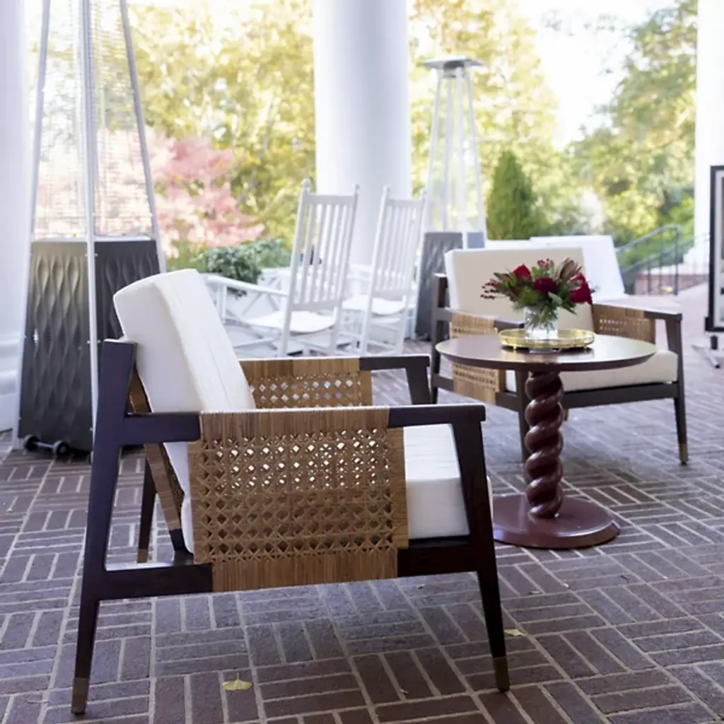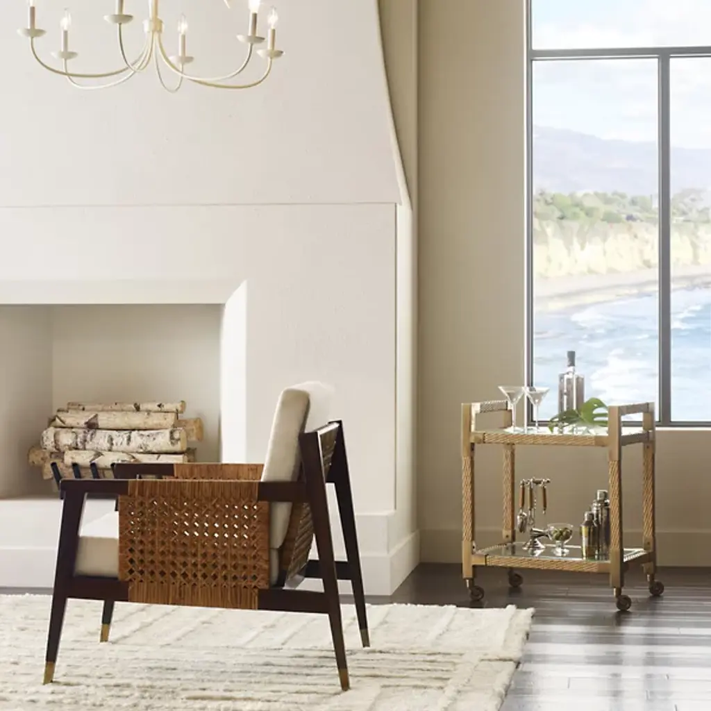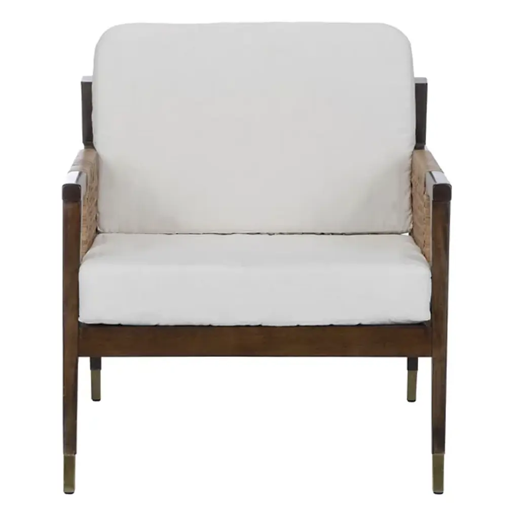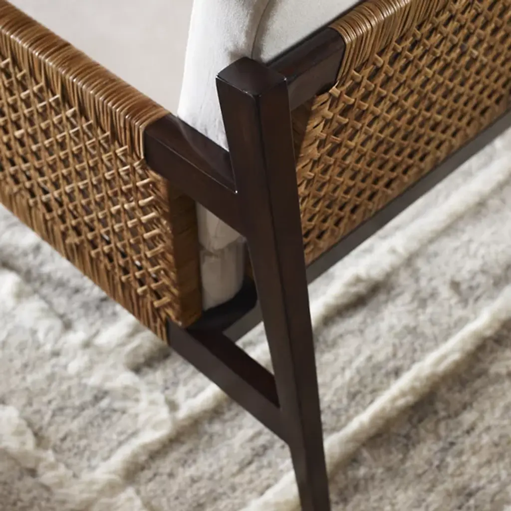 The Isle Of Palms Lounge Chair from Wildwood combines solid gmelina arborea wood with handwoven cane panels that filter light through their open weave pattern. The chair's frame employs traditional joinery techniques, while the cane work adds tropical texture and breathability to the seating experience. Tapered legs narrow gracefully toward brass ferrules that catch and reflect light at floor level. Removable foam cushions in neutral fabric provide comfort while allowing the natural materials to remain prominent. This lounge chair balances structured woodwork with organic cane elements for a relaxed yet polished aesthetic.