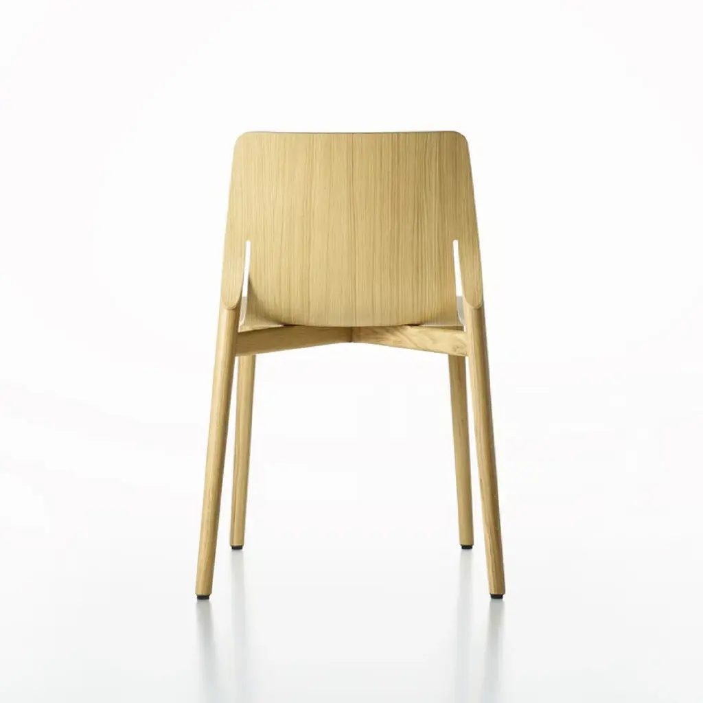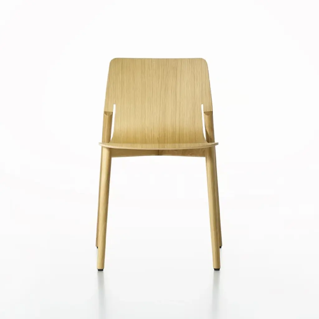 Experience ultimate comfort with our Kayak, a stackable chair with a sturdy yet elegant solid oak or beech structure. The seat, made of curved oak or beech veneered plywood, is available in a variety of finishes including lacquered oak and beechwood stains. Elevate your space with this luxurious addition.