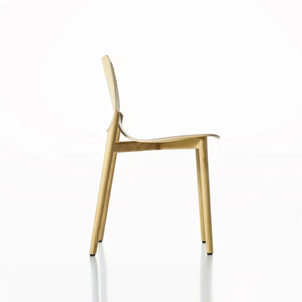 Experience ultimate comfort with our Kayak, a stackable chair with a sturdy yet elegant solid oak or beech structure. The seat, made of curved oak or beech veneered plywood, is available in a variety of finishes including lacquered oak and beechwood stains. Elevate your space with this luxurious addition.