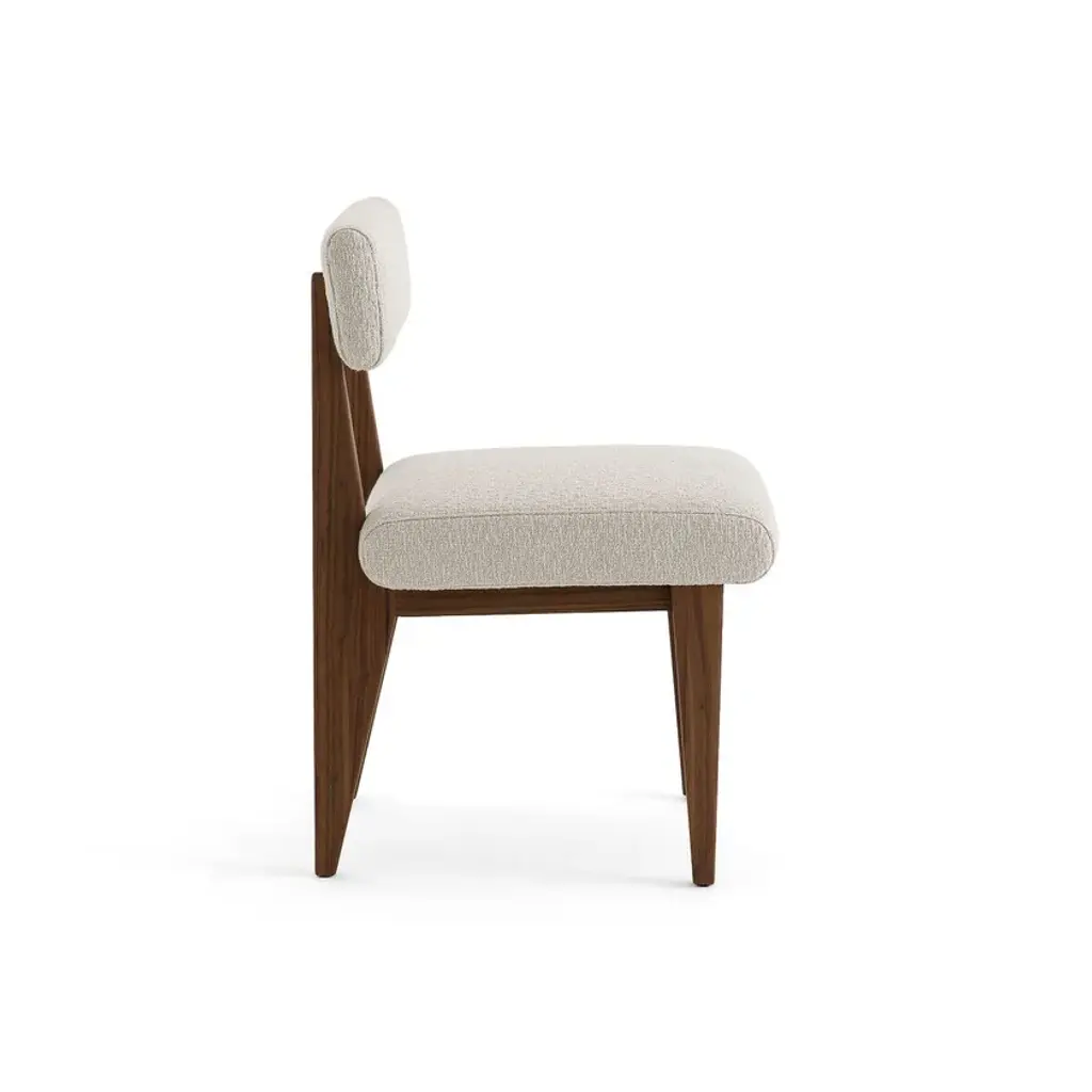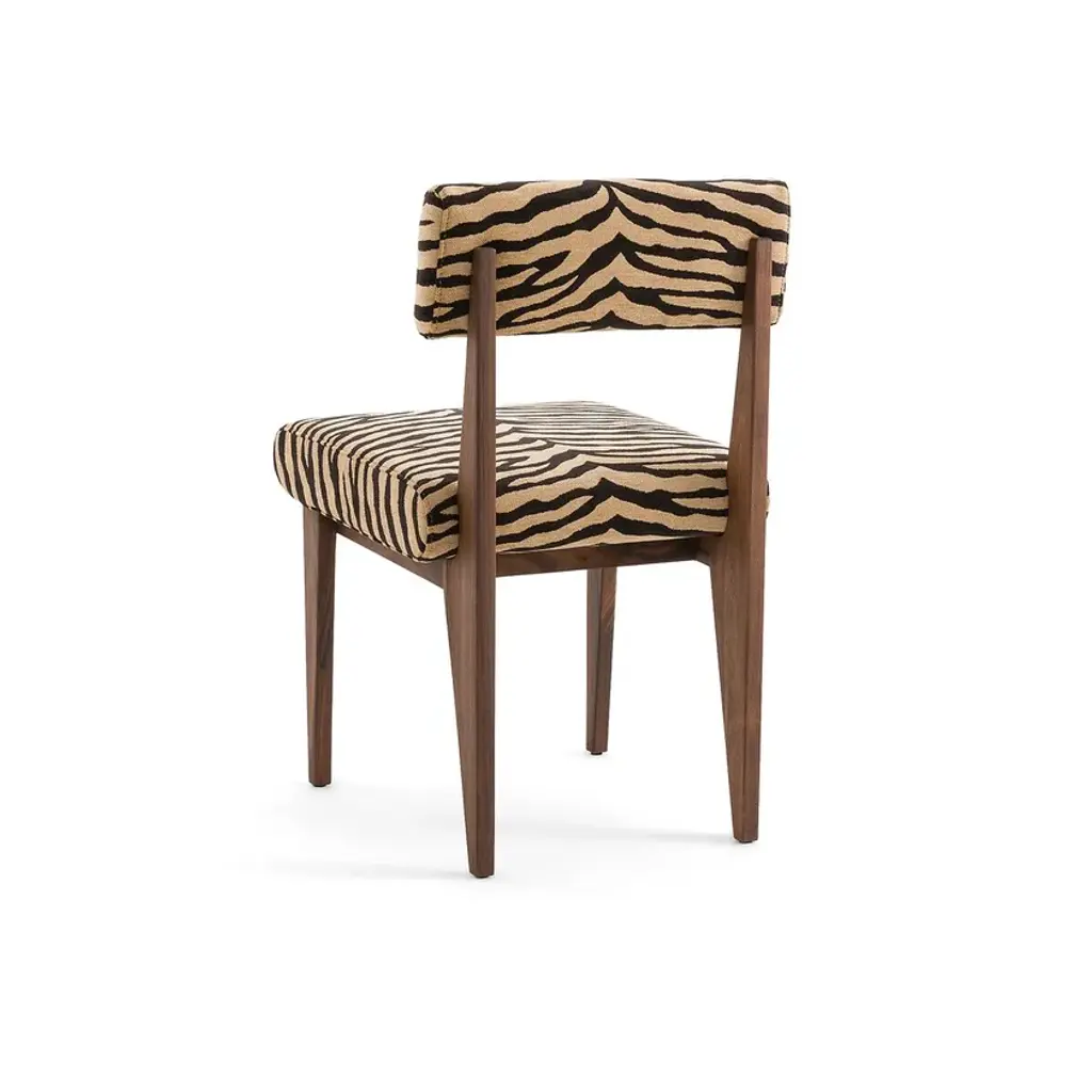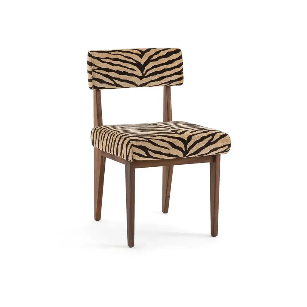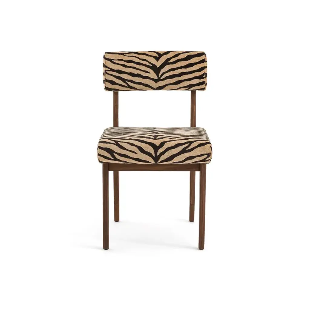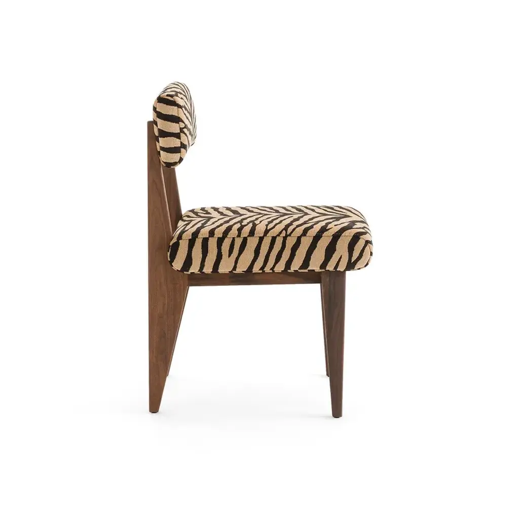 Inspired by furniture from the 1950s, Izag combines an oiled solid walnut frame with a seat upholstered in French sponge. A chair with an aesthetic and comfortable shape, designed by AMPM. Made in Europe, fabric upholstery in Italy.Lining:Bouclé fabric 40% acrylic, 20% polyester, 15% cotton, 15% linen, 5% polyamide, 5% viscose, made in Italy and spun in EuropeAnimal print fabric version, 60% viscose, 20% cotton, 20% polyesterSolid walnut frame with oiled finishSeat and backrest of birch plywood covered with HR42 kg/m³ polyurethane foam