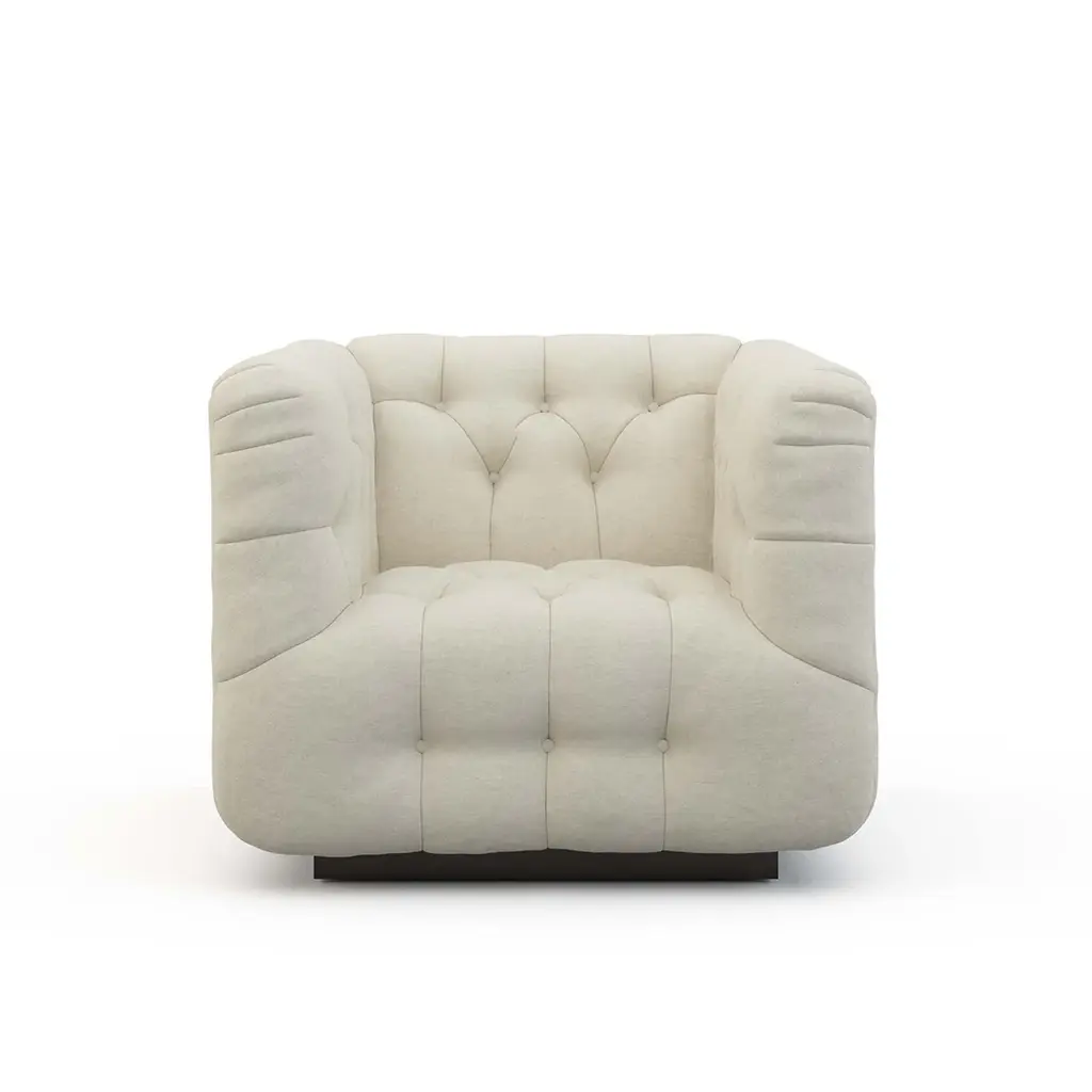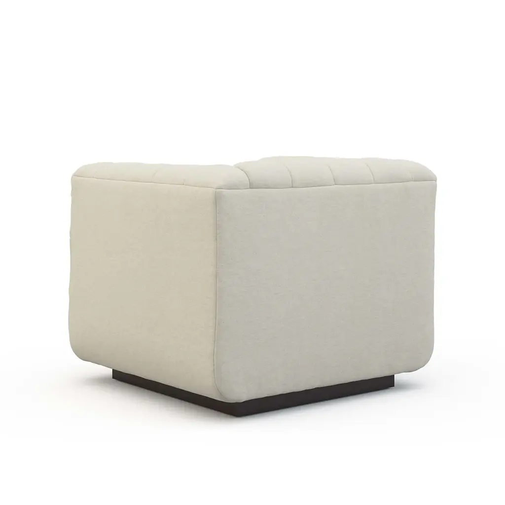 The Jagger collection also includes a sofa (sold separately). Ships In 8-10 Weeks Tufted back Tufted seat As Shown Fabric: Rayburn Oatmeal As Shown Finish: Walnut If you choose to purchase COM, once you have placed your order a customer service rep will contact you regarding where to send your fabric. Please note that current lead time is 17-19 weeks once your fabric arrives at the factory, and if unused fabric is under 1.5 yards, it cannot be sent back to you.This product can be special ordered in additional fabrics, leathers, finishes, and cushion fillings. Click here to email us for for additional information about special ordering.This image is for illustrative purposes only. The colors shown are accurate within the constraints of lighting, photography, and the color accuracy of your screen.