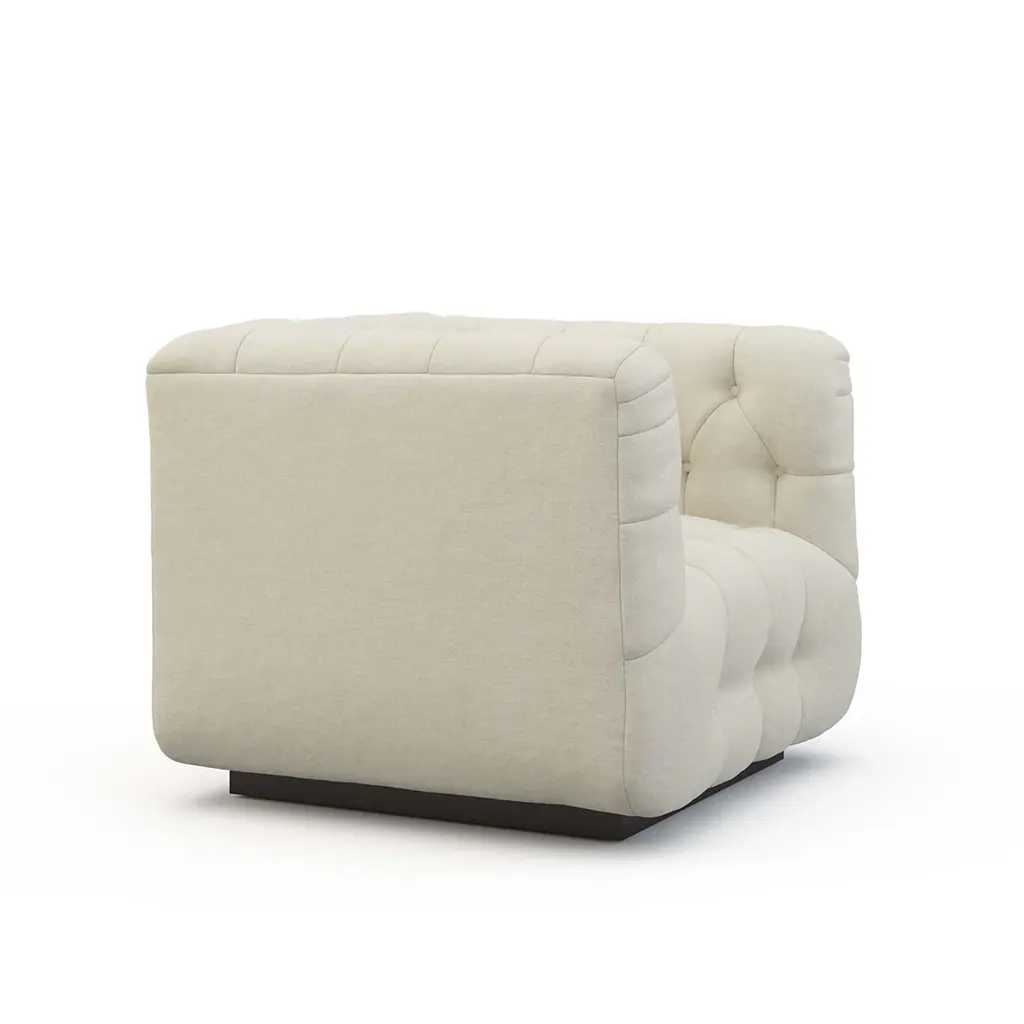 The Jagger collection also includes a sofa (sold separately). Ships In 8-10 Weeks Tufted back Tufted seat As Shown Fabric: Rayburn Oatmeal As Shown Finish: Walnut If you choose to purchase COM, once you have placed your order a customer service rep will contact you regarding where to send your fabric. Please note that current lead time is 17-19 weeks once your fabric arrives at the factory, and if unused fabric is under 1.5 yards, it cannot be sent back to you.This product can be special ordered in additional fabrics, leathers, finishes, and cushion fillings. Click here to email us for for additional information about special ordering.This image is for illustrative purposes only. The colors shown are accurate within the constraints of lighting, photography, and the color accuracy of your screen.