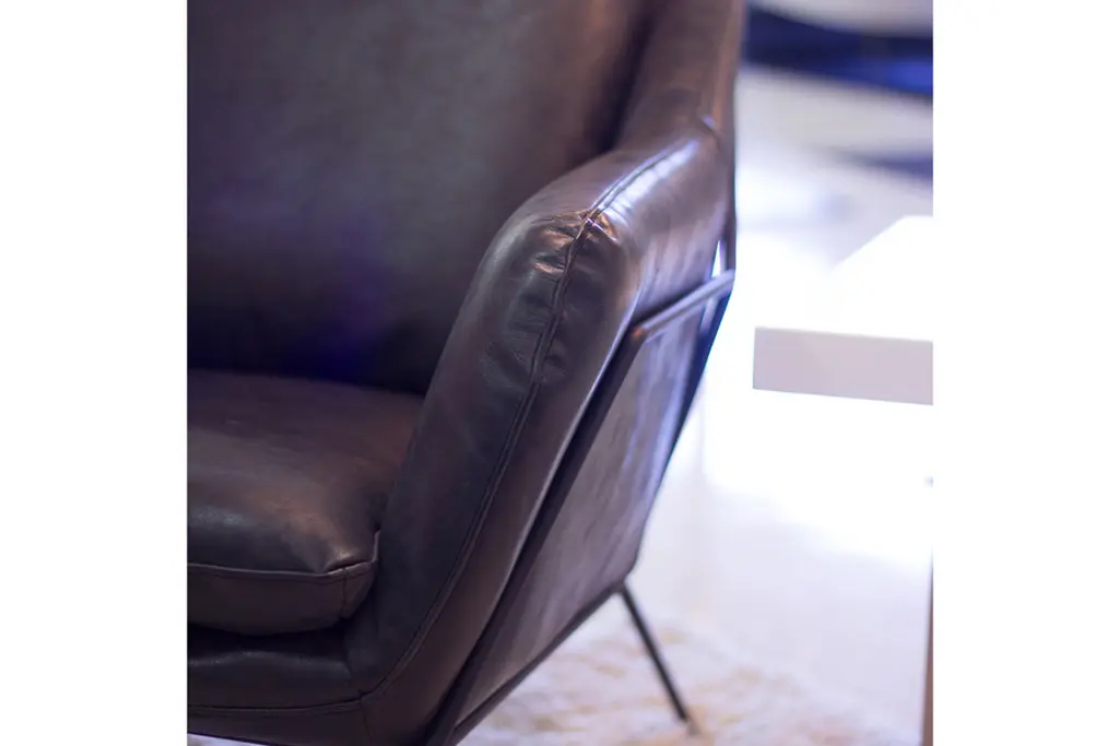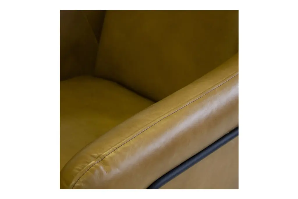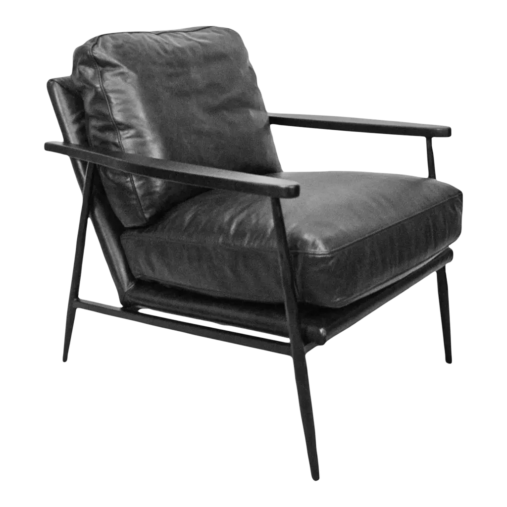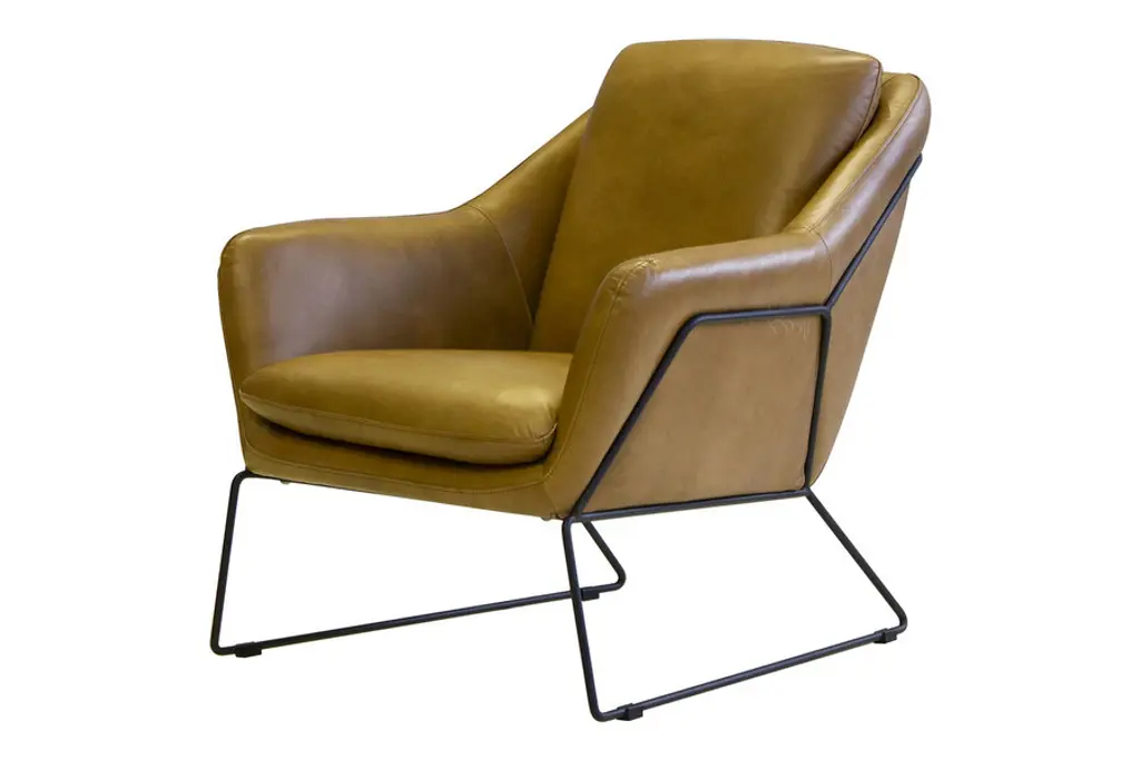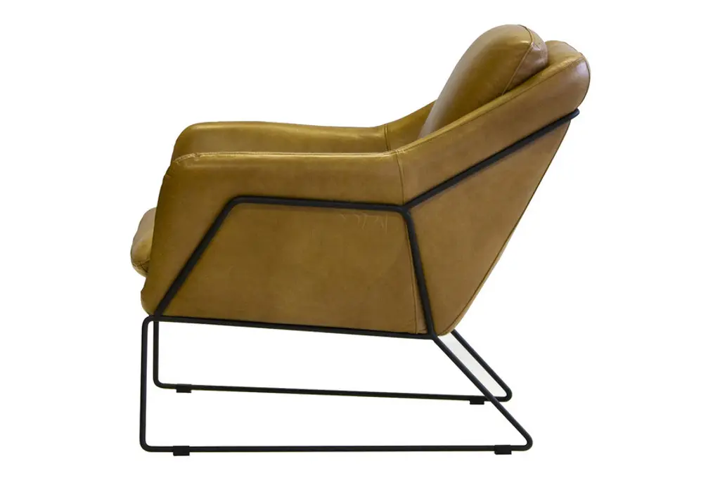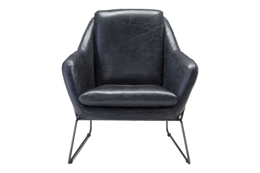 This classic arm chair got an avant-garde design upgrade. The vintage distressed leather upholstery sitting prettily upon an iron frame will refresh any room in your home or office. Settle into the fashionable comfort of the Jasper arm chair today!