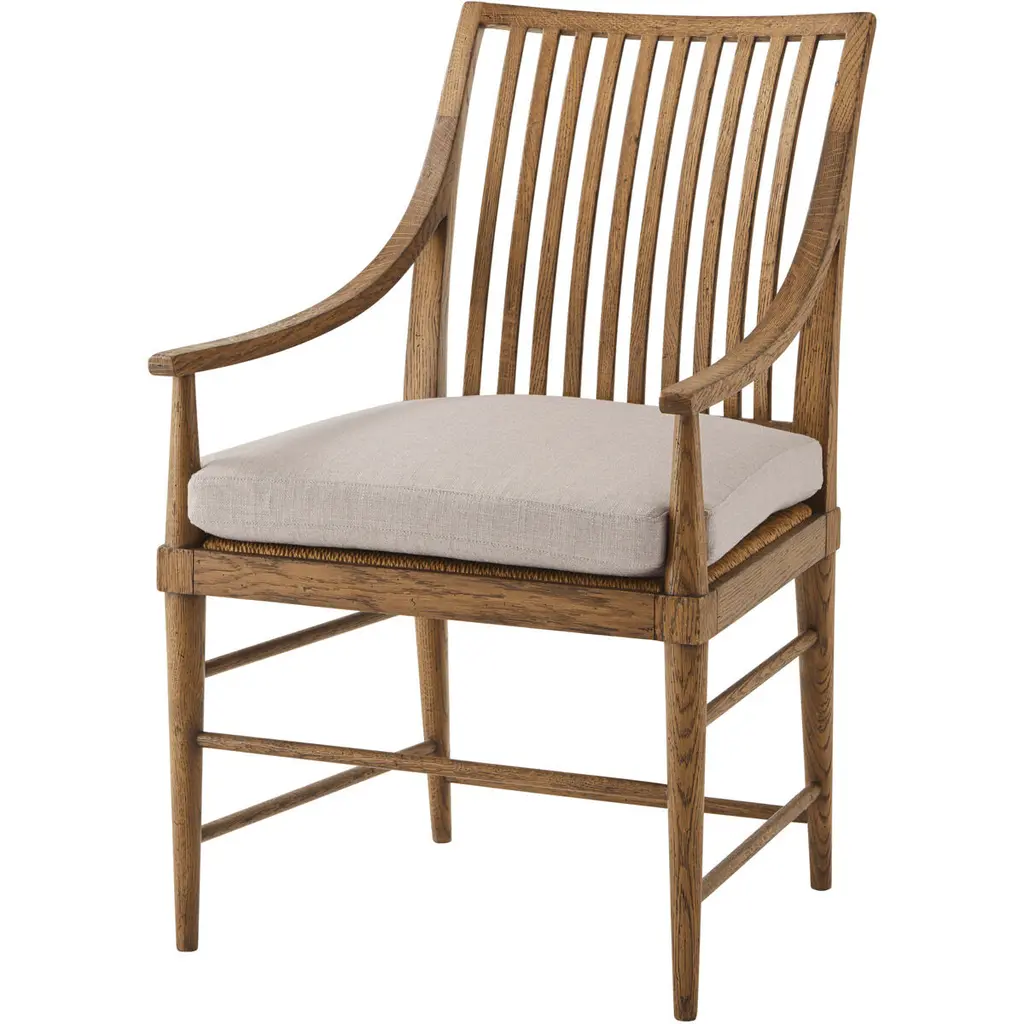 Martyn Lawrence Bullard's custom java chair.Inspired by Dutch colonial furniture, these deep chairs are perfect both indoors and out. The slat design brings light to the overall feel whilst the "egg" carved legs adds a quirky, unexpected quality.