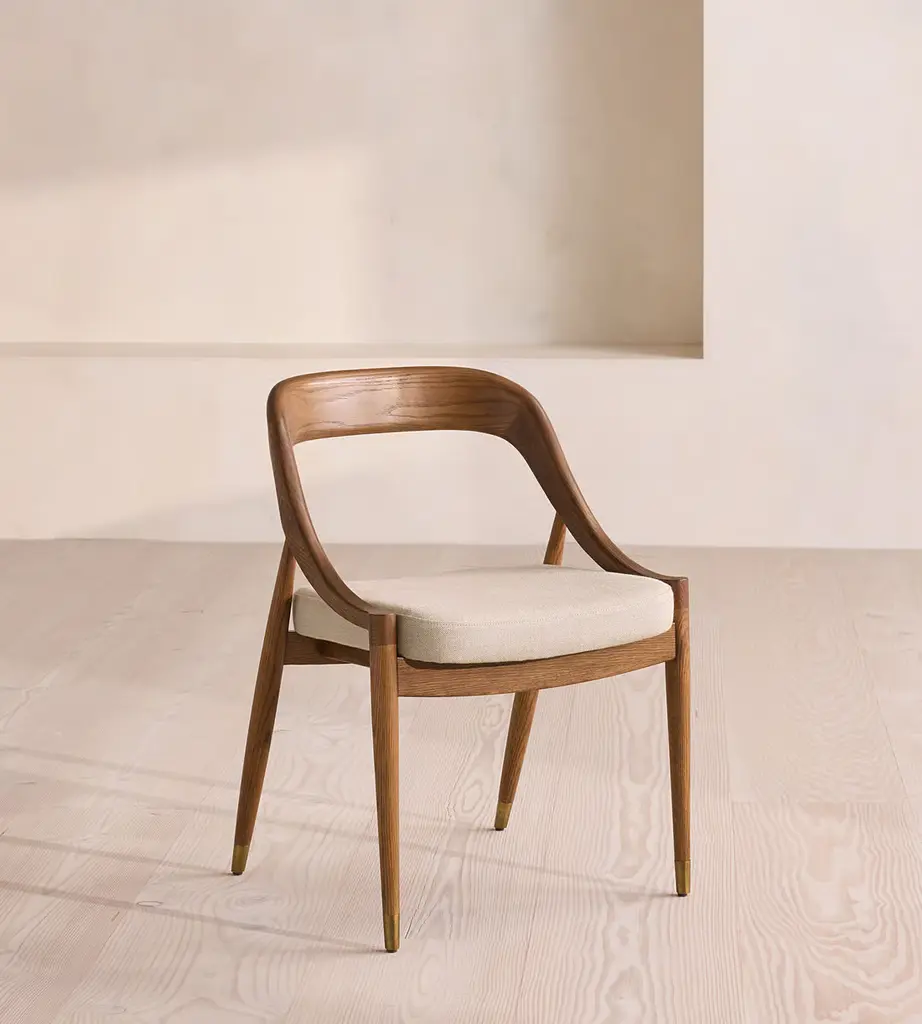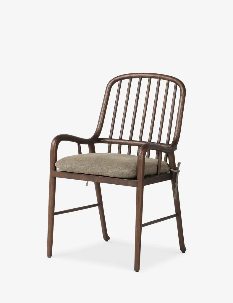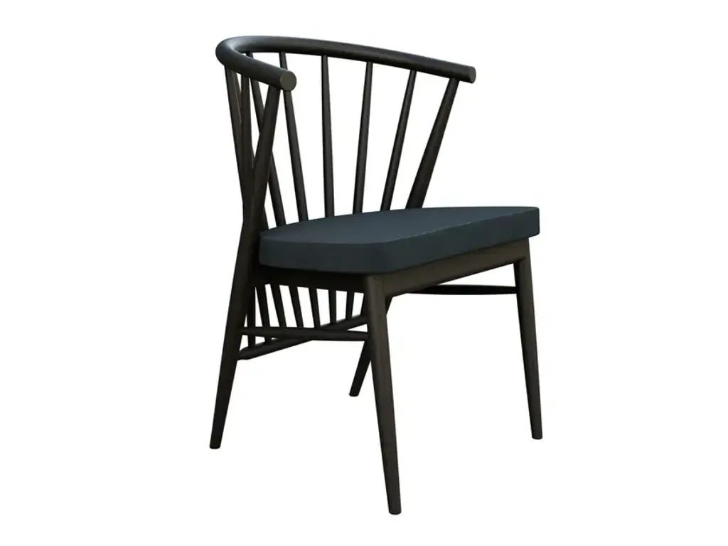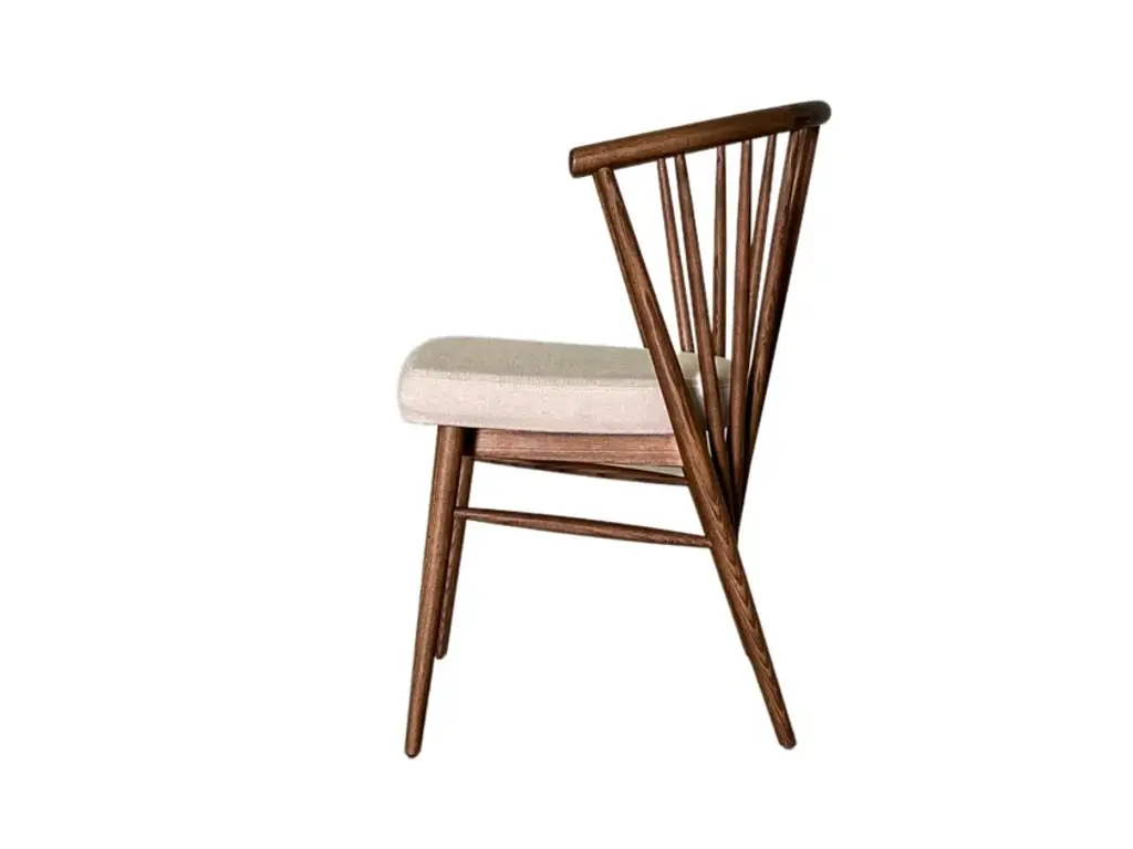 Chair made of turned ash wood with upholstered seat. Available with armrests.