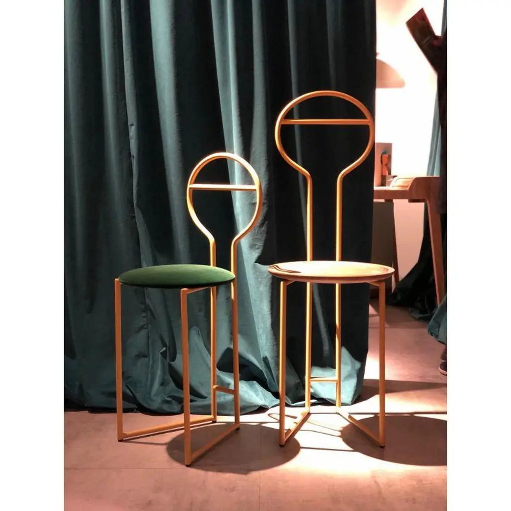 Joly Chairdrobe black HB Velvetforthy Menta by Colé Italia with Lorenz&Kaz (2019)Dimensions: H.105/seat H. 45 D.38 W.40 cmMaterials: Tubular Steel, Bent and Powder Painted. Padded upholstered seatFinishing: GD gold; BK blackAlso available: COM fabric, fabric cat A, fabric cat B, leather cat P, and high back,TC: C.O.M. fabric - send us your own materialCA: Cat A - Angel (polypropylene), Ganesha (synt. leather), Nord Wool (felt)CB: Cat B - Tiffany (polyestere), Lana (aquaclean)CC: Cat C - Velvetforthy (Velvet), Topia (wool), Novum (Wool), Opera (felt)CP: Cat P - Milano (full grain leather) The Chairdrobe, a manifestation of an always improvised object, like the chair next to the bed which turns into a wardrobe! Like the jolly in card games, Joly fills exactly this gap. It is a silent butler, a tray or an occasionalchair. Lightweight and easy to grip, it can “follow” its user into the living or sleeping area, as needed. Joly is ironic,decorative and functional. It serves well as an entrance piece, in the bathroom and obviously... in the bedroom! Jol(l)y good! Made of gold/black powder-coated metal with a top / seat in solid natural walnut or padded cushion.Colé is a young Italian design brand, with a high-end production 100% made in Italy. Born from the experience of Matteo De Ponti, architect, who grew up in one of the most outstanding Milanese design families, and the artistic sensibility of Laura Macagno, degree in Economics and passionate of art and design. Our mission is to create design icons, beautiful and comfortable pieces that can stand the test of time, furnishing houses of international and sophisticated clients, and realized with craftsmanship, thus unique. “We love objects which own deep roots, excellent quality, and a strong evocative power. Archetypal forms dressed with new beauty without losing their classical composure”.Our expressive research is inspired by the utopian force of Italian eminences grises architects and designers of the ’50s, the Scandinavian design, the Bauhaus, ethnic handcraft and houses of famous writers of the XX century, all different as a style but united by the intense soul of those who worked and lived there.