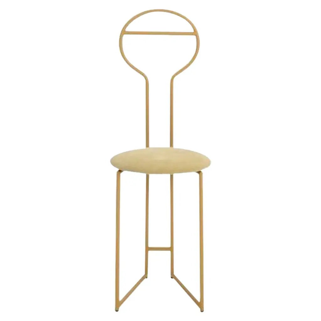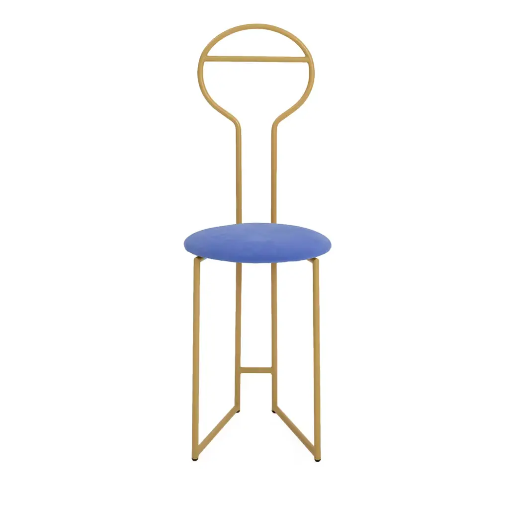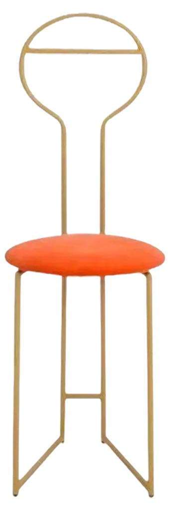 Designed by Lorenz + Kaz in 2019 and made of gold powder-coated metal with a padded cushion seat in Red velvet fire class E1, the Chairdrobe is a manifestation of an always improvised object, like the chair next to the bed which turns into a wardrobe! Like the jolly in card games, Joly fills exactly this gap. It is a silent butler, a tray, or an occasional chair. Available upon request in 4 different fabric categories, please ask Concierge for customizations.