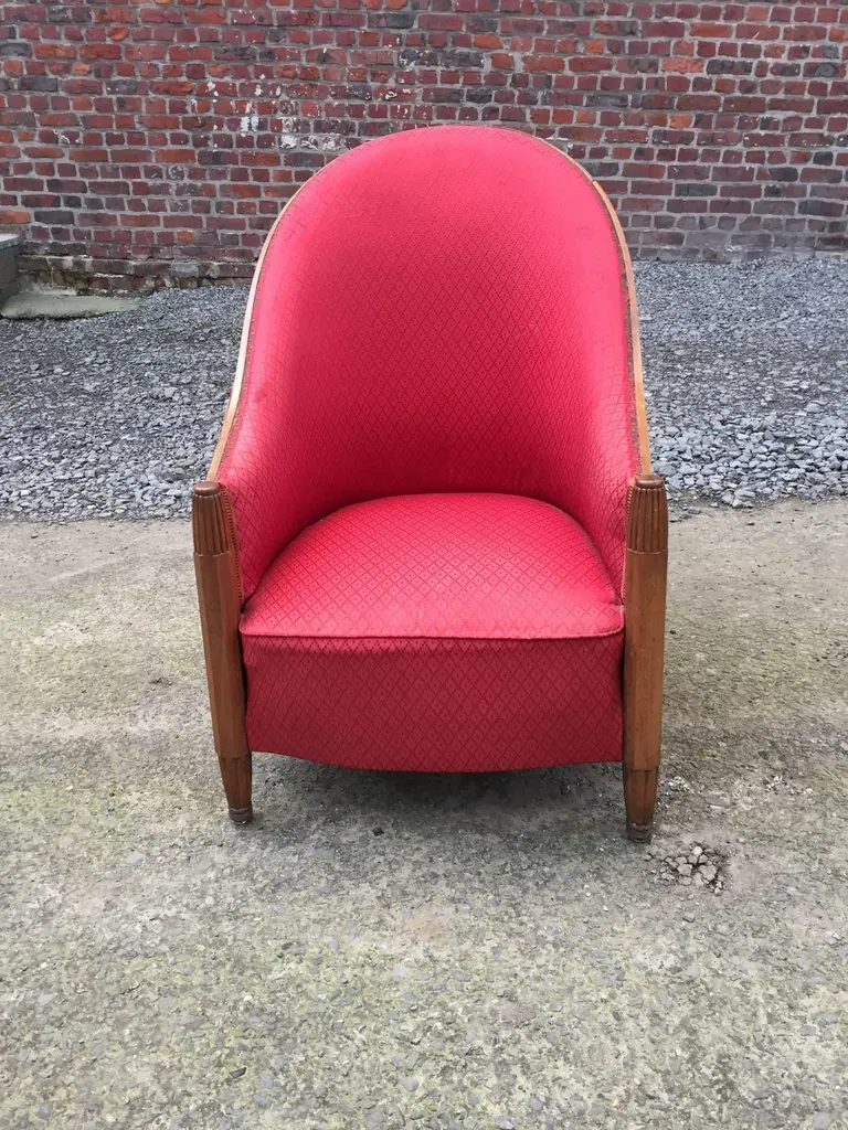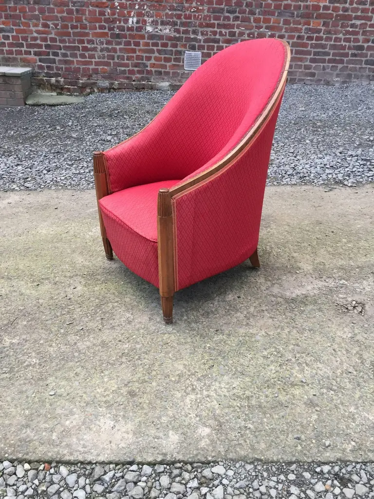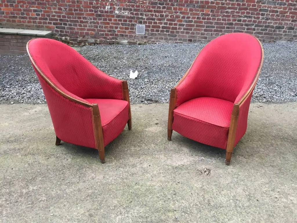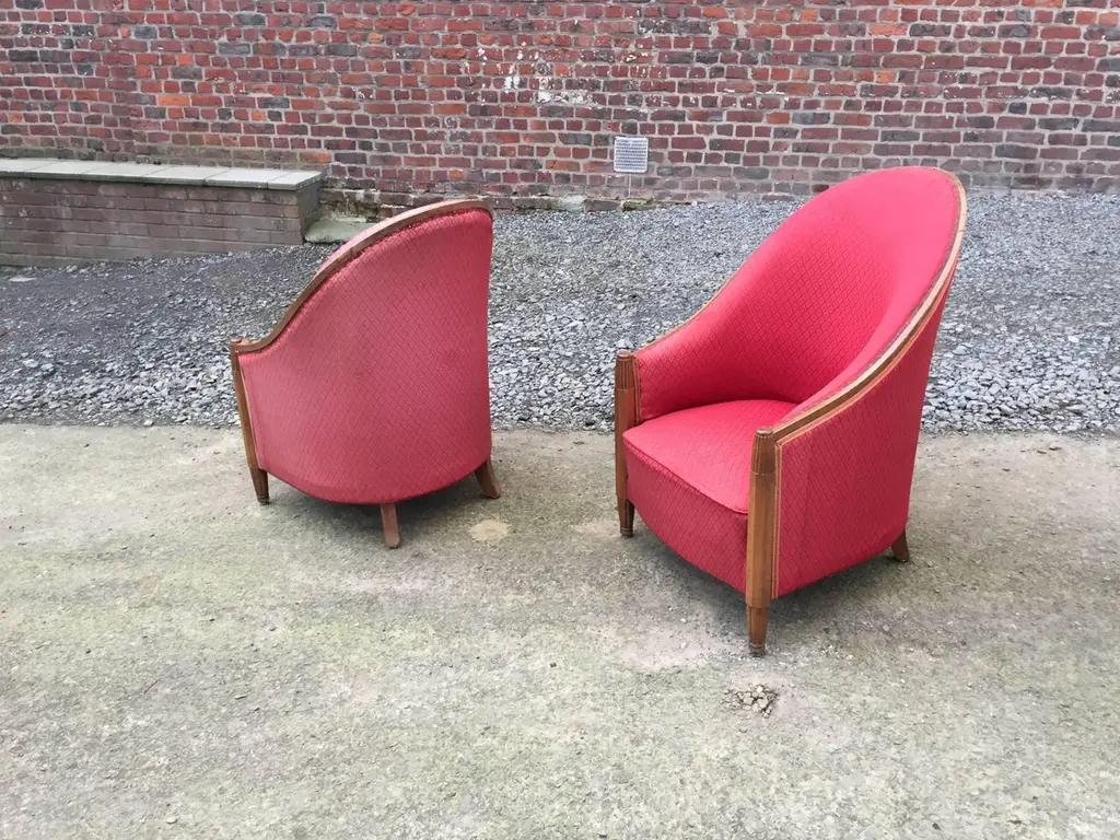 Joubert et Petit 'DIM' attributed pair of Art Deco walnut club chairs.