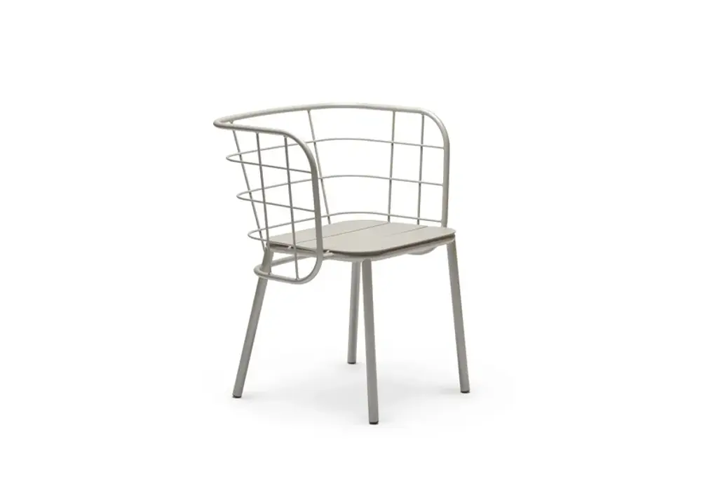 The materials and finishes are made for outdoor use such as galvanised paint, larch laminate, nautical rope weave and fabric tested for resistance to UV rays and humidity. However, the original and refined material research also makes the Jujube collection an authentic furnishing accessory for indoors with its upholstered quilting and wide range of coloured fabrics that adapt to different interior design styles.Extremely flexible in its modularity, Jujube is also very eclectic in its variety of finishes. Indeed, there is a wide choice of colours and types of upholstery for the sofas and even more so for the Easy chairs. From the metal or woven version, indicated precisely for outdoor use, to the fully upholstered version. In the latter case, the backrest has quilting that perfectly echoes the graphic design of the backrest, making it even softer and more comfortable. Jujube , designed by 4P1B Design Studio is a full range of sofas, armchairs, ottomans and chairs inspired by a very distinctive graphic design.The tubular metal back identifies the entire collection and became an important decorative element that, depending on the version, manifests itself more or less relevant.The collection presents, in fact, in many variations that are obtained both in relation to selected finishes, both in relation to the way of combining the components.Jujube is actually a real compositional system of modular elements that are combined each other to create different types of seats. The sofa, for example, can be a two-seater sofa, with bench or ottoman, may have two backs or be asymmetrical, can be used indoor or outdoor, depending on the accessories and composition that can be chosen and integrated at any moment.