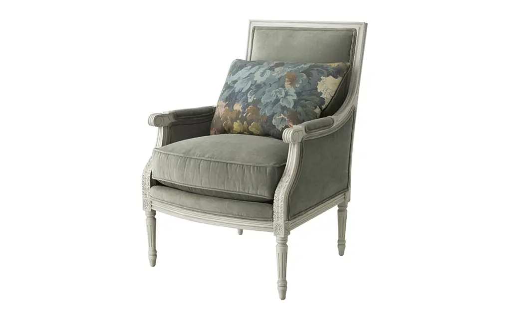 Juliette Heathered Ivory Crypton Provence Sage Bergere Chair