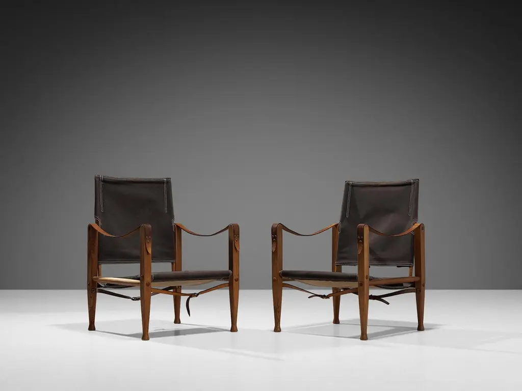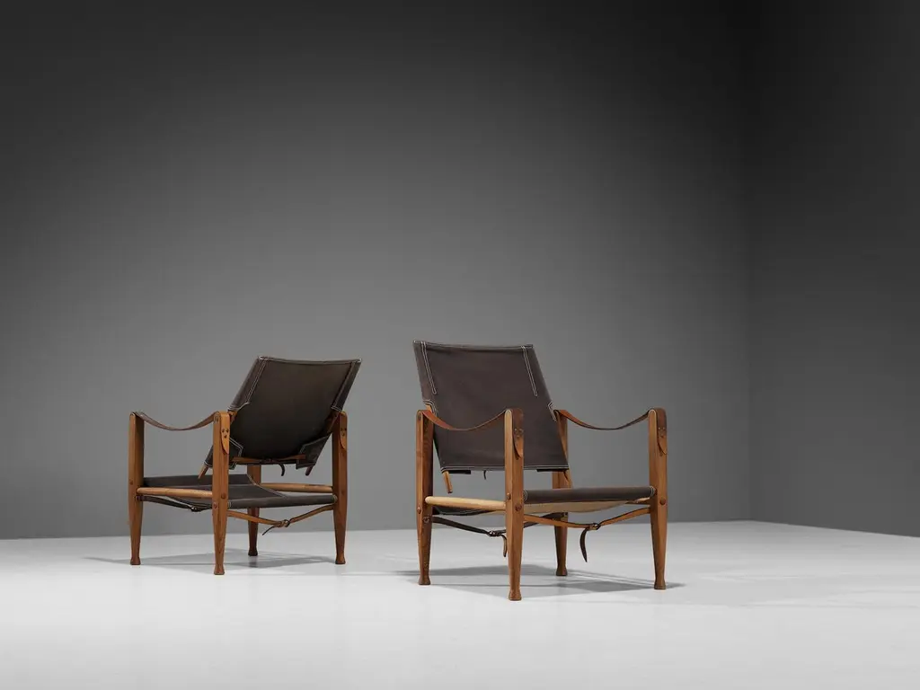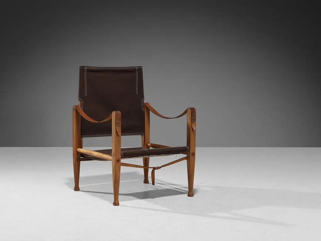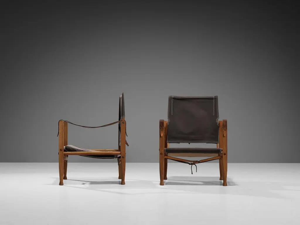 Kaare Klint For Rud Rasmussen Safari Chairs In Brown Canvas And Ash