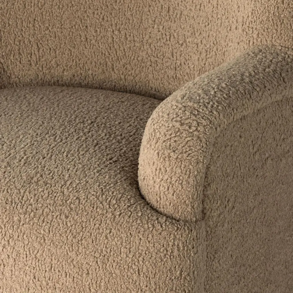 Kaden Modern Classic Brown Upholstered Boucle Wood Frame Wingback Arm Chair