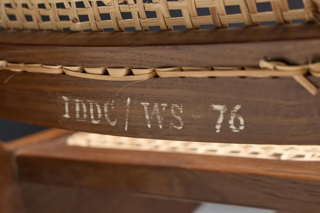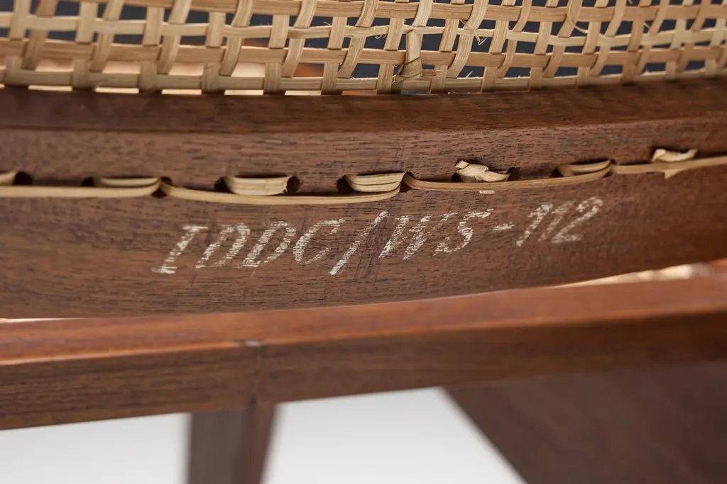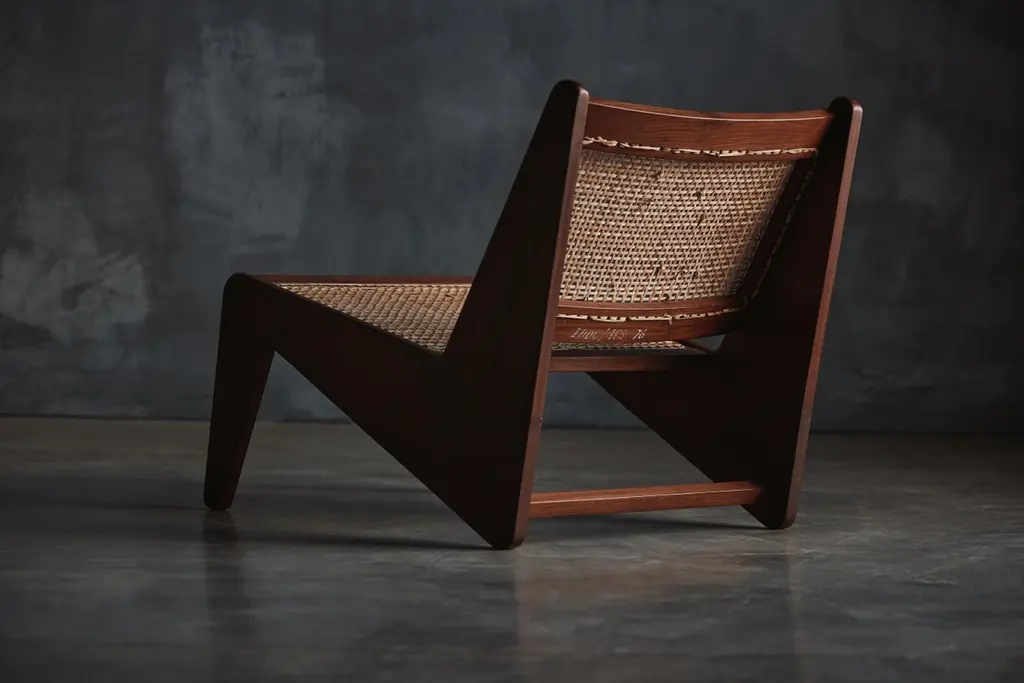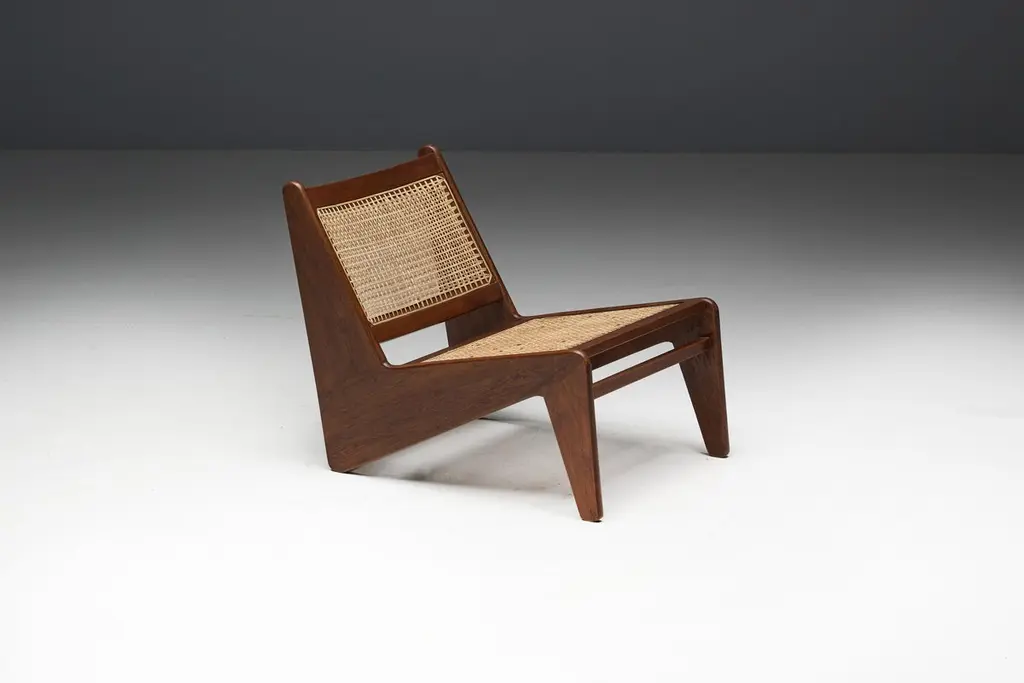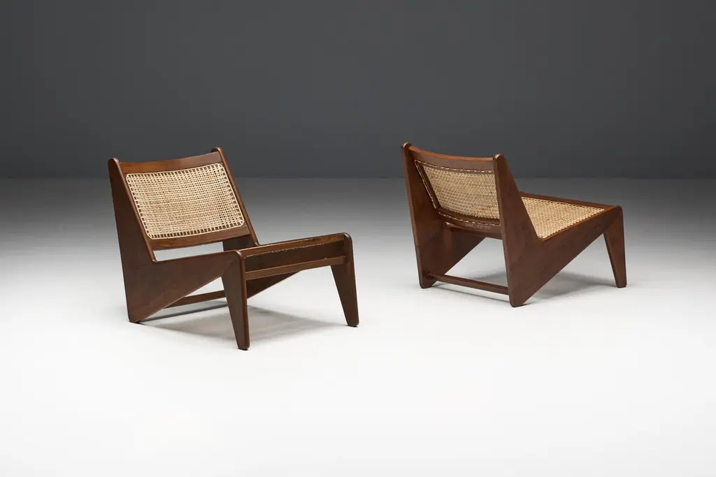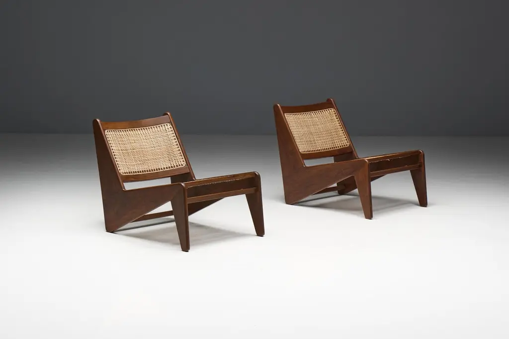 Kangaroo chairs designed by Pierre Jeanneret for Chandigarh’s General Hospital Hall, crafted from solid teak and intricately braided cane. These iconic chairs became integral to the city’s furniture landscape, blending modern European aesthetics with traditional Indian influences. Jeanneret’s designs are celebrated for their simplicity and elegance. This low chair is defined by its unique "Z" shaped sides, formed by a sequence of three vaguely triangular, coplanar elements. The seat and backrest showcase a signature weaving technique within the wooden frame. Found in both public buildings and private residences, the chair symbolizes Chandigarh's mid-century design. Notably, the chairs were made from trees harvested during the city's construction, reflecting an early commitment to sustainability. Their eco-friendly origin further adds to their historical value. Two chairs are available, priced individually