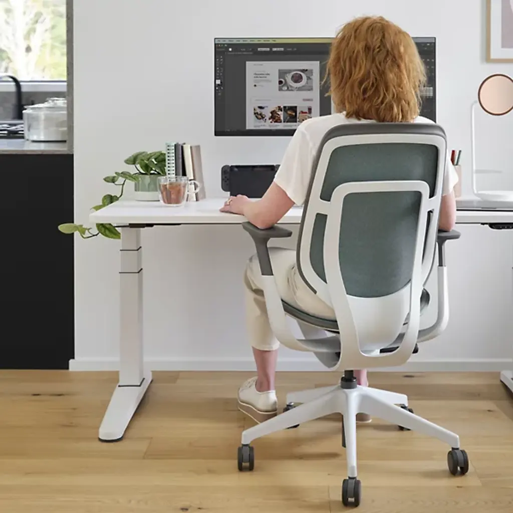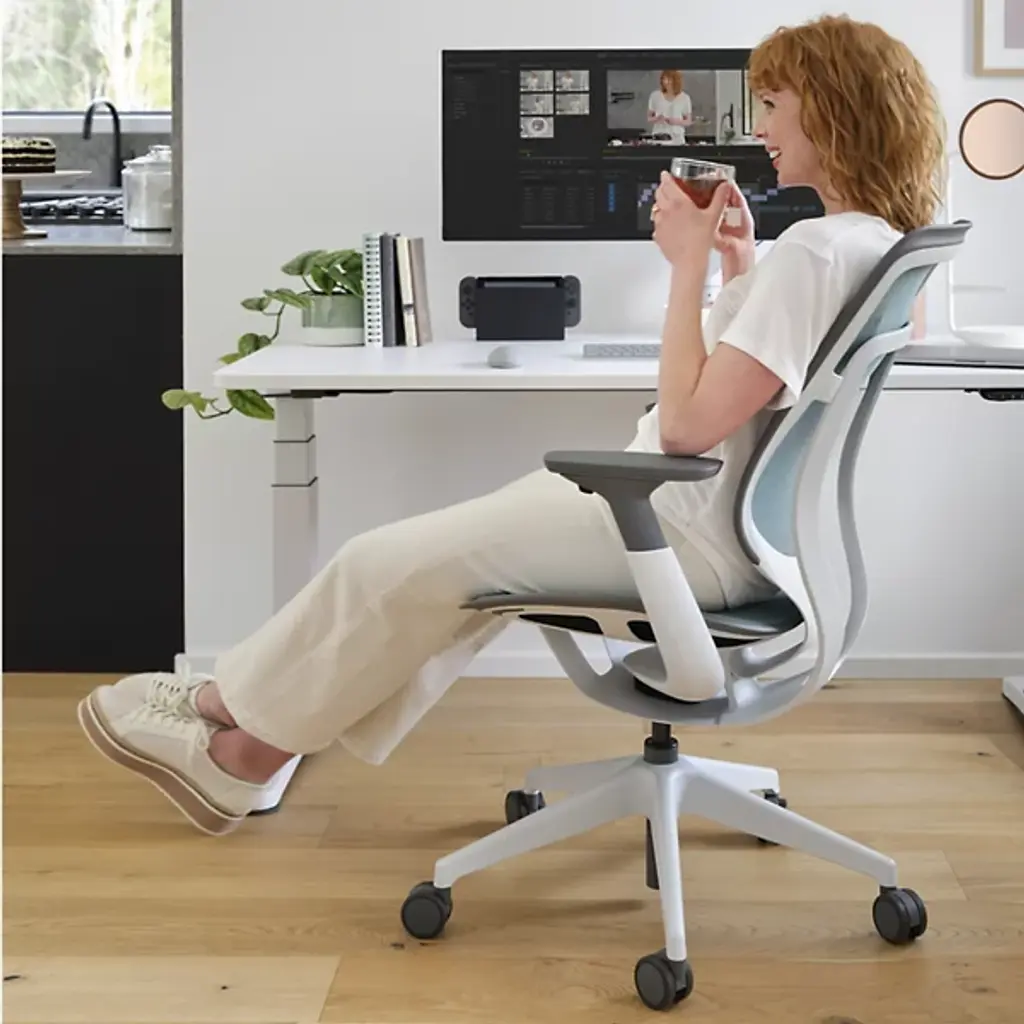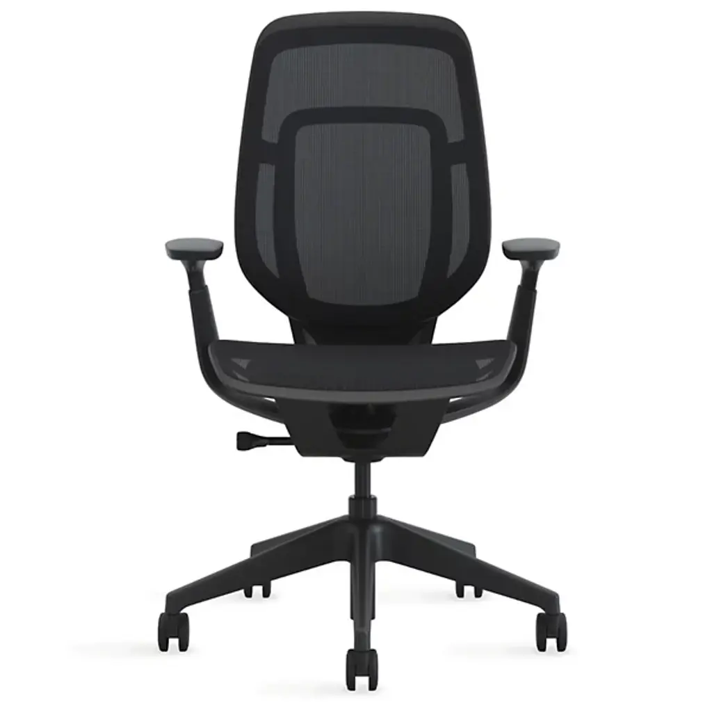 The Karman Standard-Back Chair from Steelcase showcases 4-way adjustable arms. You can personalize the chair to your liking, allowing you to adjust width, height, pivot, and depth for an optimal fit. The chair also lends additional lumbar support for comfort throughout the day. Embracing an eco-conscious ethos, Karman is made in part from recycled and recyclable materials. Your chair features an intricate mesh and boasts a seat made of plastic and acrylic.