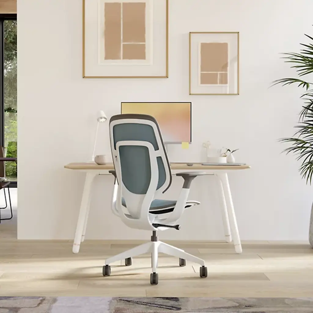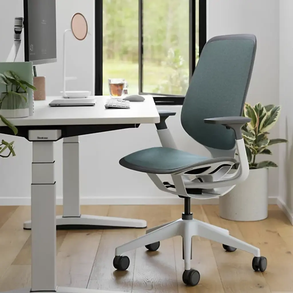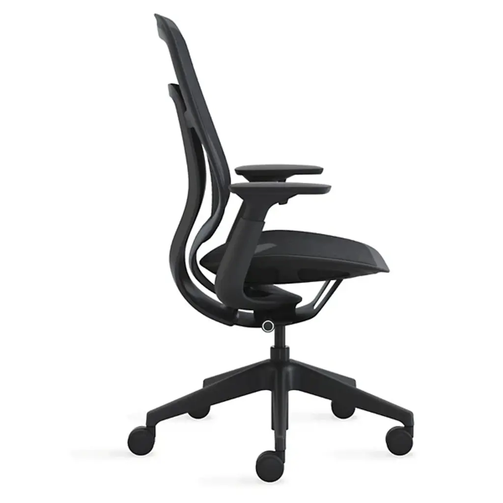 The Karman Standard-Back Chair from Steelcase showcases 4-way adjustable arms. You can personalize the chair to your liking, allowing you to adjust width, height, pivot, and depth for an optimal fit. The chair also lends additional lumbar support for comfort throughout the day. Embracing an eco-conscious ethos, Karman is made in part from recycled and recyclable materials. Your chair features an intricate mesh and boasts a seat made of plastic and acrylic.