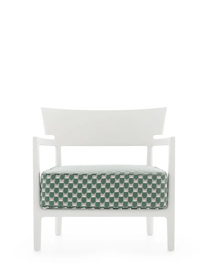 In Cara armchair, classically rigorous lines surround a comfortable seat. The perfect combination of formalism and technological innovation, for an original product with an industrial vibe that extends Kartell's range of soft furnishings.