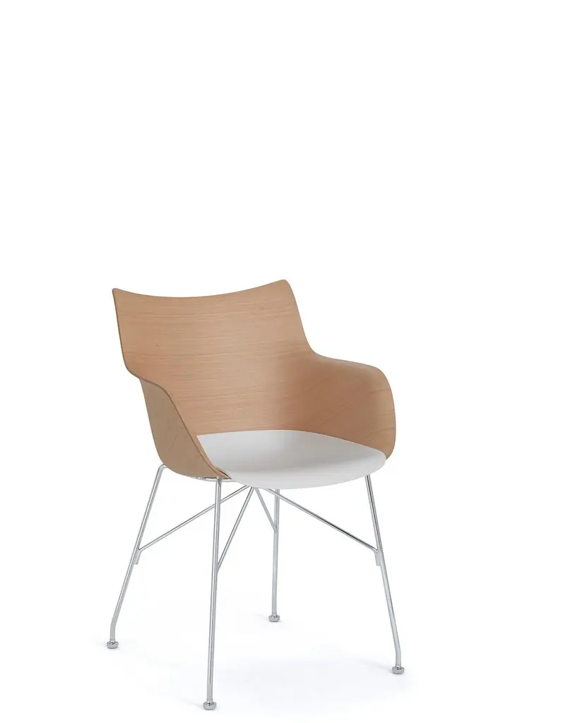 Q/Wood is the armchair from the Smart Wood collection, with enveloping lines that create soft armrests and offer maximum seating comfort. Using patented technology, the wood is worked with a mould designed to bring the curvature of the panel to the very edges, creating a seat with sinuous roundness.Available in different frames and color.