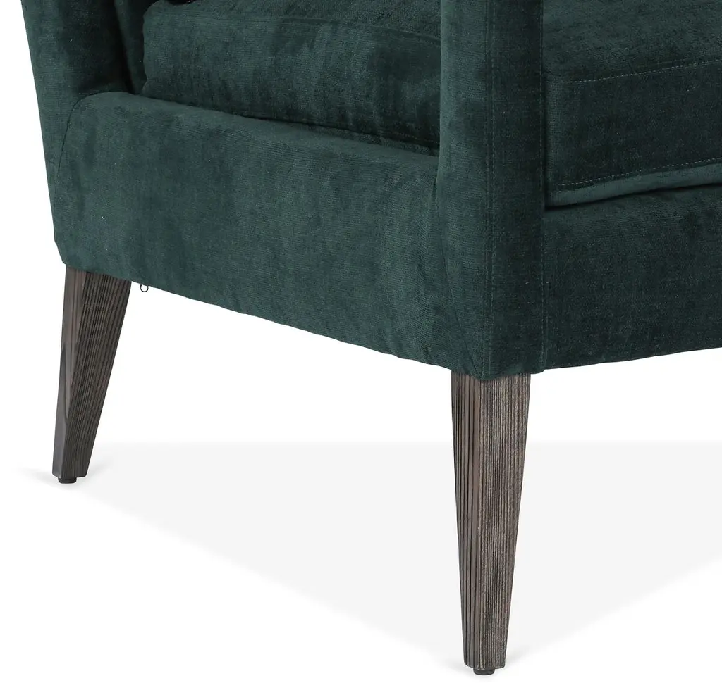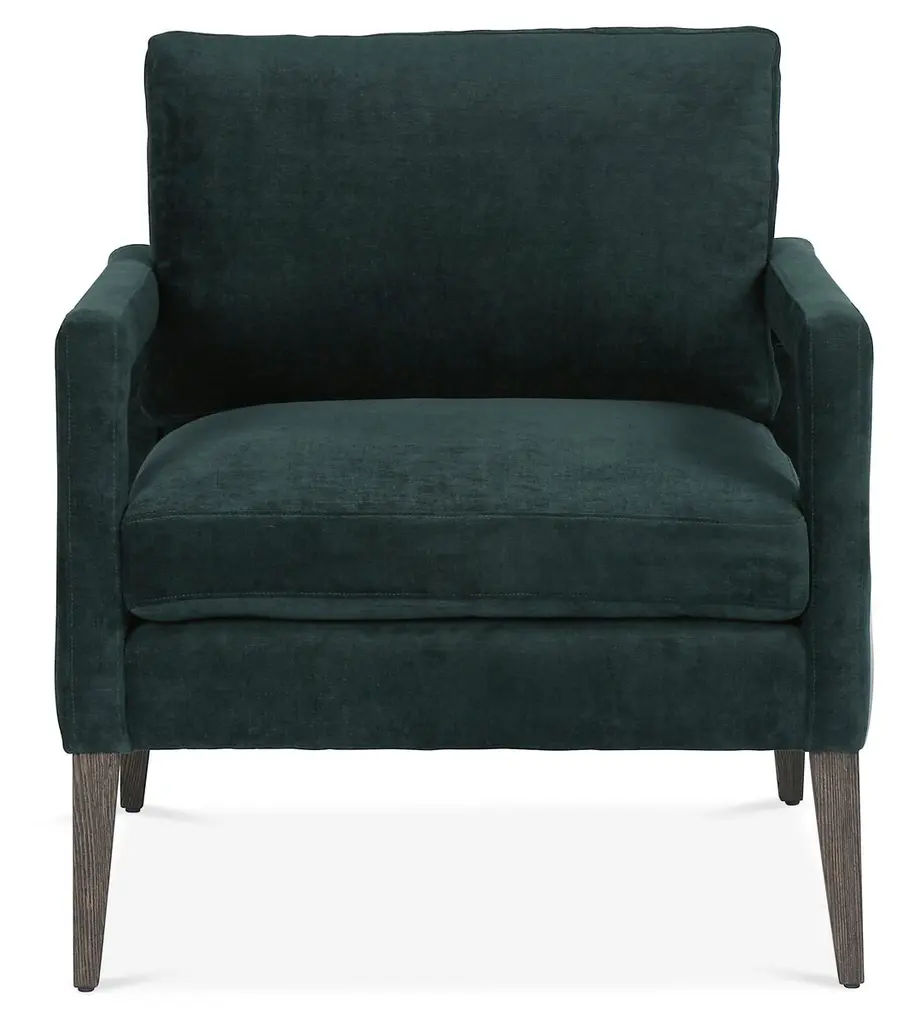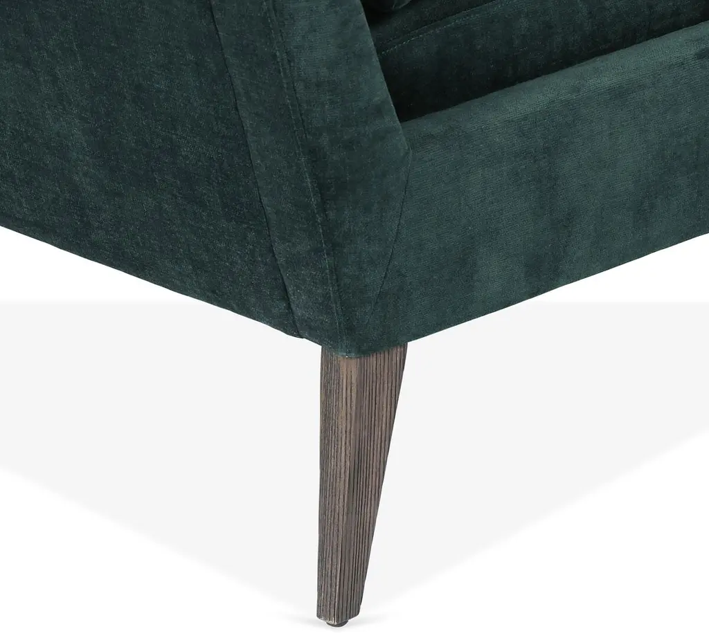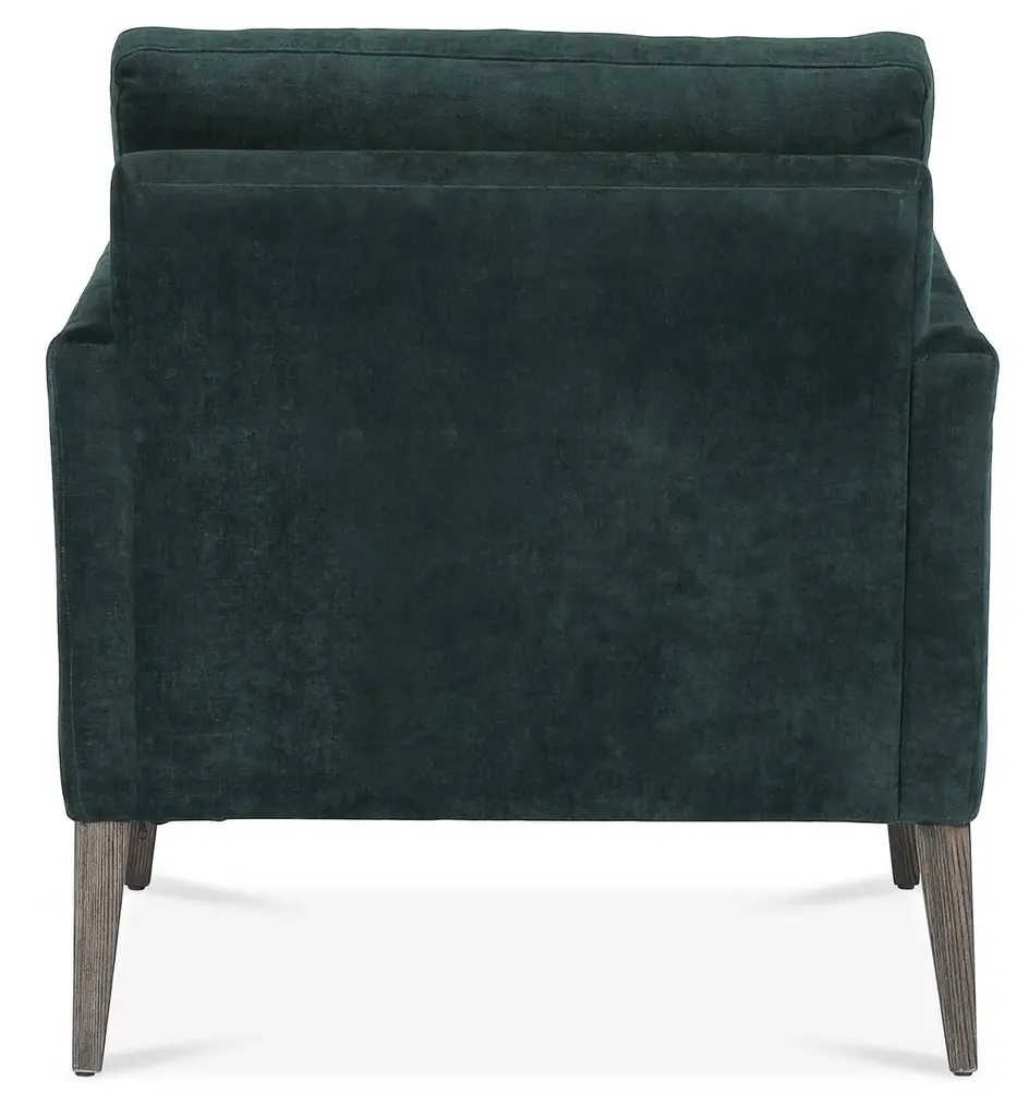 Designed with tapered oak legs and a clean-lined midcentury-inspired silhouette, this club chair features ample padding and velvet upholstery in a lush emerald hue.