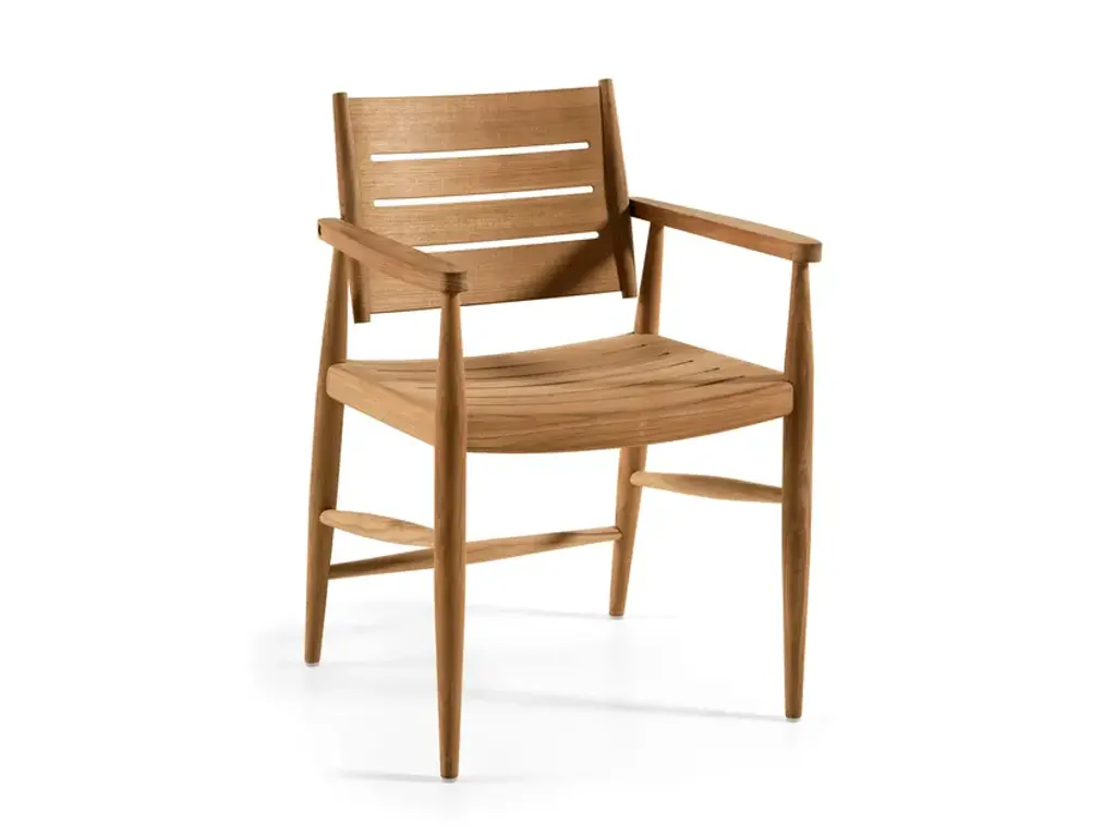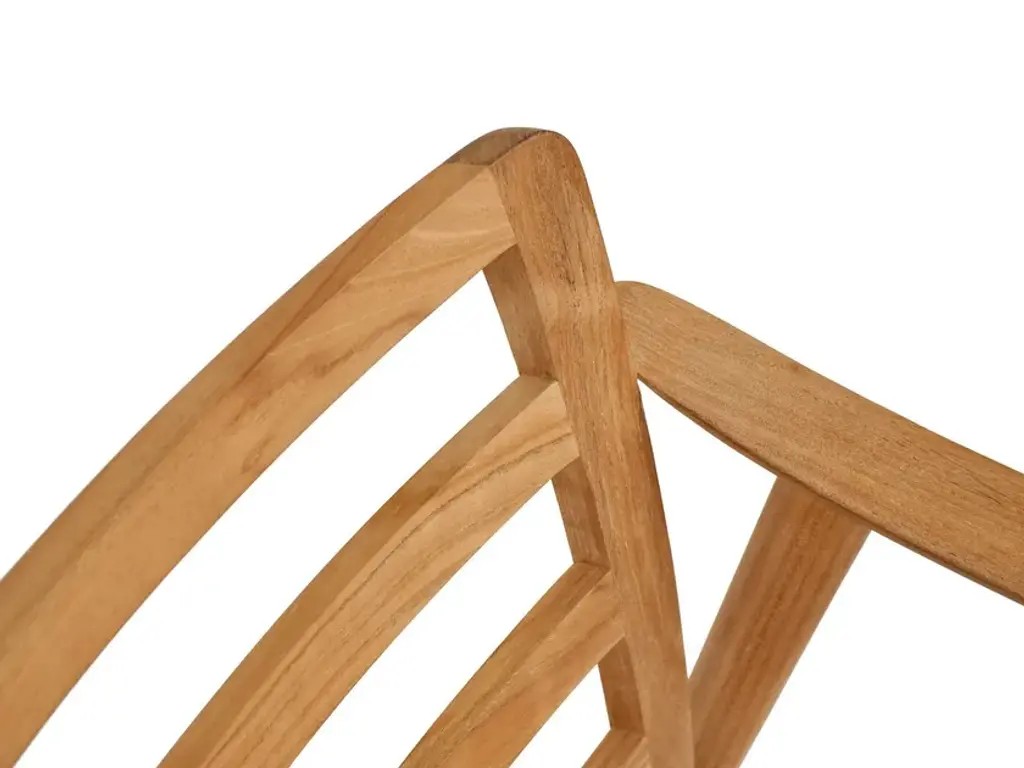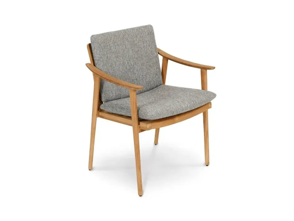 A teak chair with armrests is not just a piece of seating furniture, but a symbol of timeless elegance and the beauty of nature. This special piece of furniture combines comfort and aesthetics in a unique way, making it the perfect addition to any home or garden, and the teak armchair not only embodies the beauty of nature, but also durability.The teak wood used for these armchairs often comes from sustainably managed plantations, making it an environmentally friendly choice. The most eye-catching feature of this teak armchair is its modern but classic design. The curved armrests give it a gentle curve, giving the armchair an inviting and aesthetically attractive shape.The combination of classic elegance and modern refinement makes the KENO chair an outstanding piece of furniture art. In addition to the aesthetic appeal, this teak armchair offers a high level of seating comfort. The generous seat surface and the ergonomic design of the backrest, together with the comfortable cushions, make this possible in a successful way.KENO is available with backrests in teak or with wicker made from the new, robust and weather-resistant fm-rope twist. KENO cuts a fine figure everywhere.