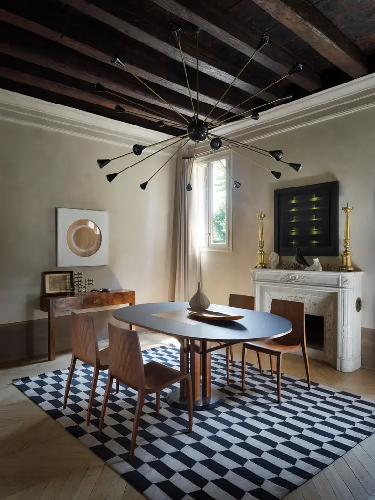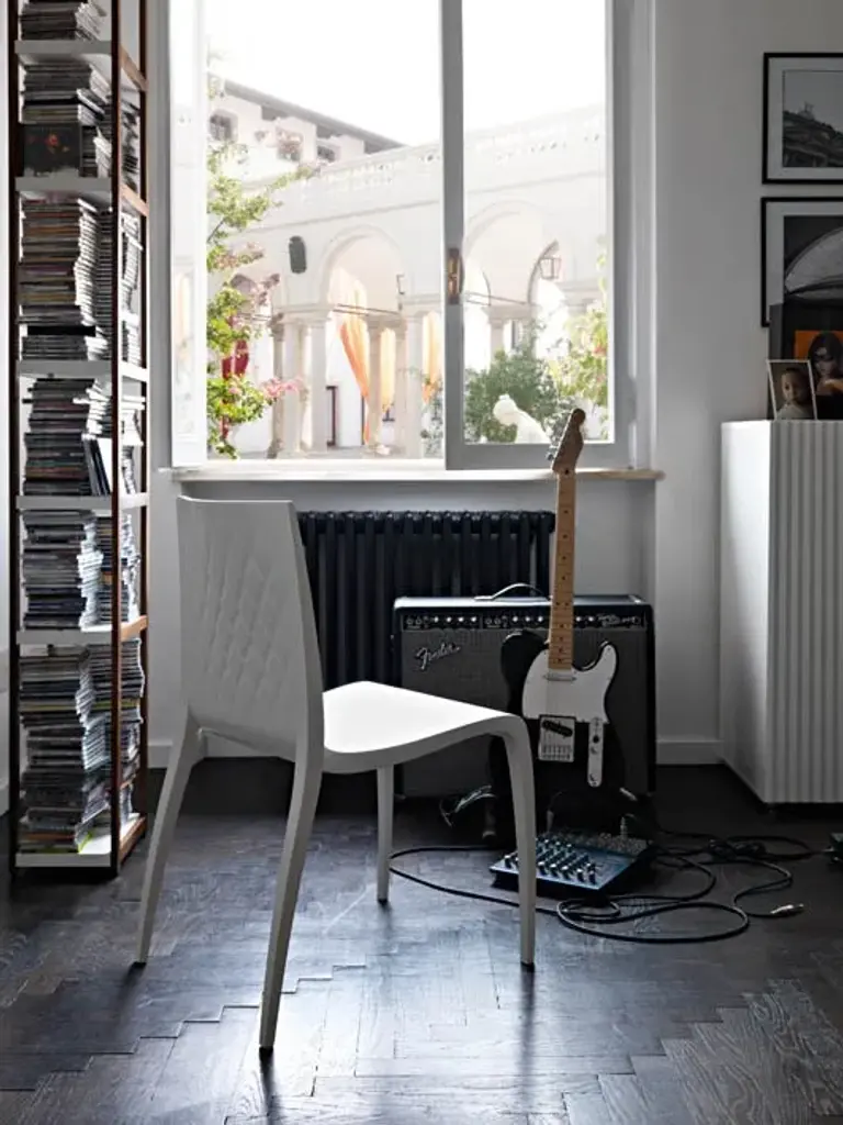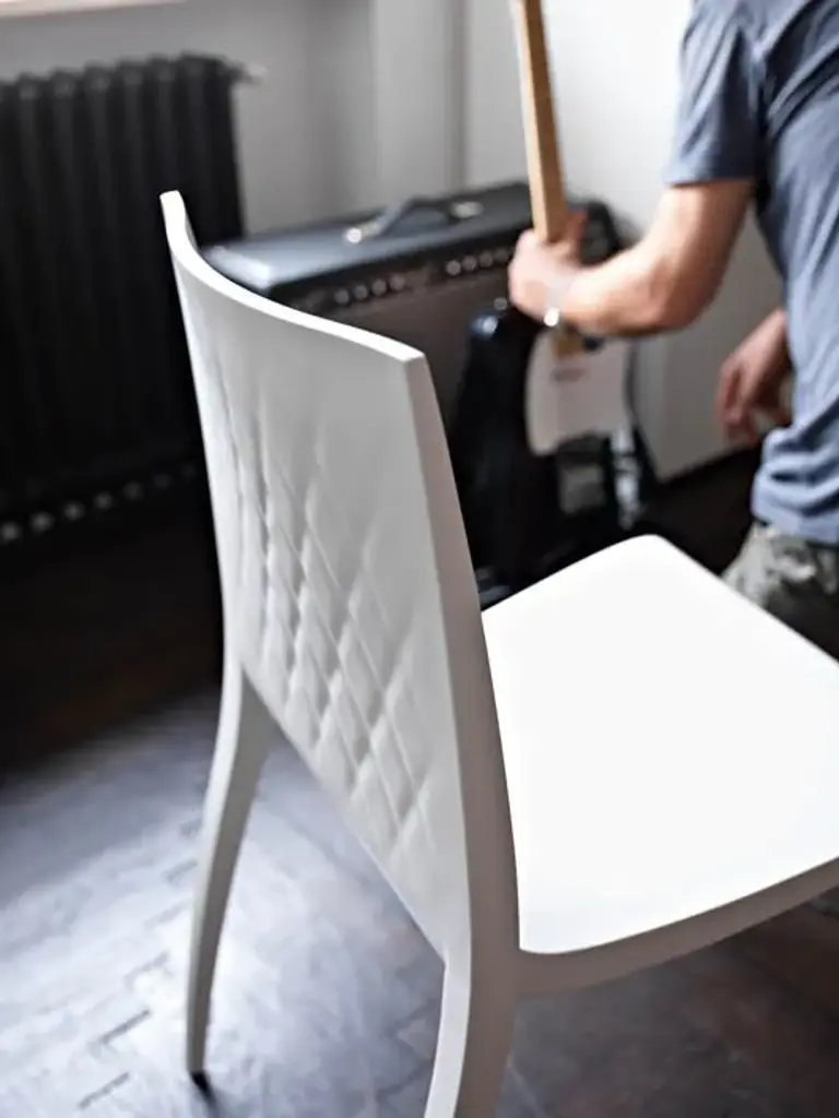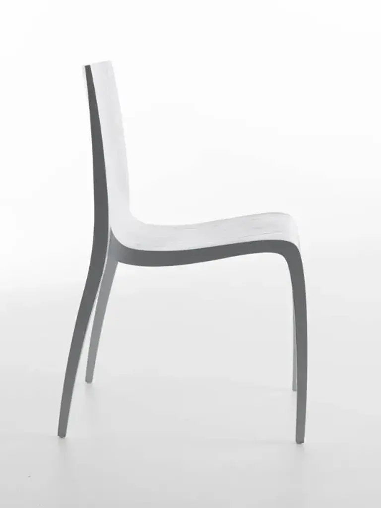 In the Japanese culture, the “ki” represents the energy found in every element. It is the inspiration for the challenging formal research that Mario Bellini solved with refined and modern taste. The result is a sinuous, lightweight seat, partly due to its polyurethane foam inside. The back, embellished with an embossed decoration reminiscent of the diamond pattern of stitched fabric upholstery, is the formal feature for a chair that combines simplicity, elegance and ergonomics.Stackable chair with structural parts made from solid beech, veneered and/or stained and/or lacquered. Internal support made from injected polyurethane. Transparent PVC feet. Weight: 3.7 Kg / 8.15 lb. The open pore finish allows you to appreciate the sight and feel of the natural characteristics of the wood, like its veins, colouring and nodes and, of course, its pores. The embossed lacquering is made with special coatings containing mineral powders, usually quartz, that create a finish of a certain degree of roughness depending on the type, thickness and density of the powders that it contains. Embossed lacquering, by virtue of its thickness, is particularly shock and wear resistant as well as scratch resistant.FINISHOpen pore white finish, open pore black finish, blackwhite (the front of the chair is blackwhite veneered, the back is black varnished), walnut, embossed white lacquered, embossed black lacquered