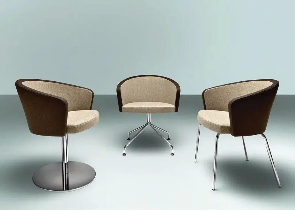 Kicca is an elegant and enveloping upholstered armchair featuring an extensive range of frame typologies, perfect for the hospitality market.