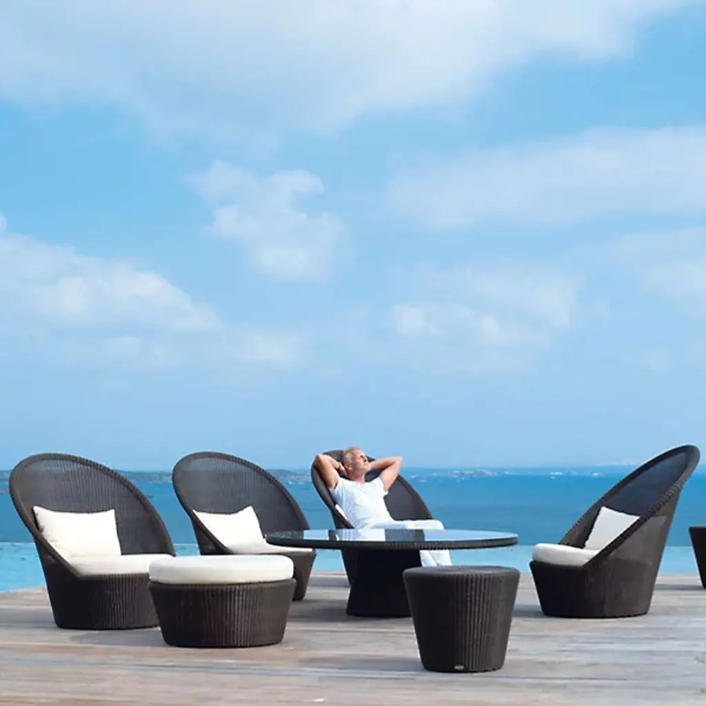 Finally, a proper throne for sun worshipers. The Cane-line Kingston Sunchair with Wheels is a luxuriously tall-backed lounge chair made entirely out of durable all-weather Cane-line Weave, with discreet wheels that allow you to roll the chair wherever needed to best enjoy the sun. And the weave itself is open and airy, allowing you to enjoy cool summer breezes from all sides.