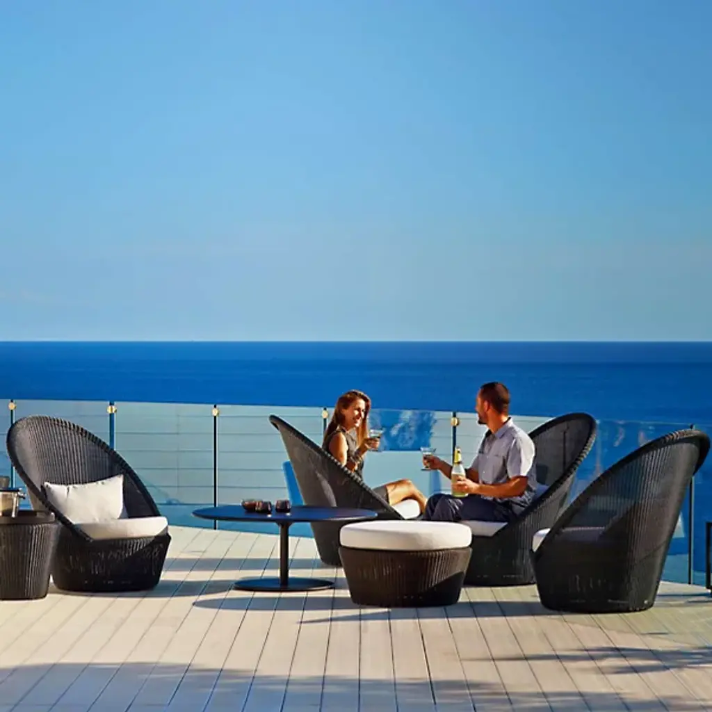 Finally, a proper throne for sun worshipers. The Cane-line Kingston Sunchair with Wheels is a luxuriously tall-backed lounge chair made entirely out of durable all-weather Cane-line Weave, with discreet wheels that allow you to roll the chair wherever needed to best enjoy the sun. And the weave itself is open and airy, allowing you to enjoy cool summer breezes from all sides.