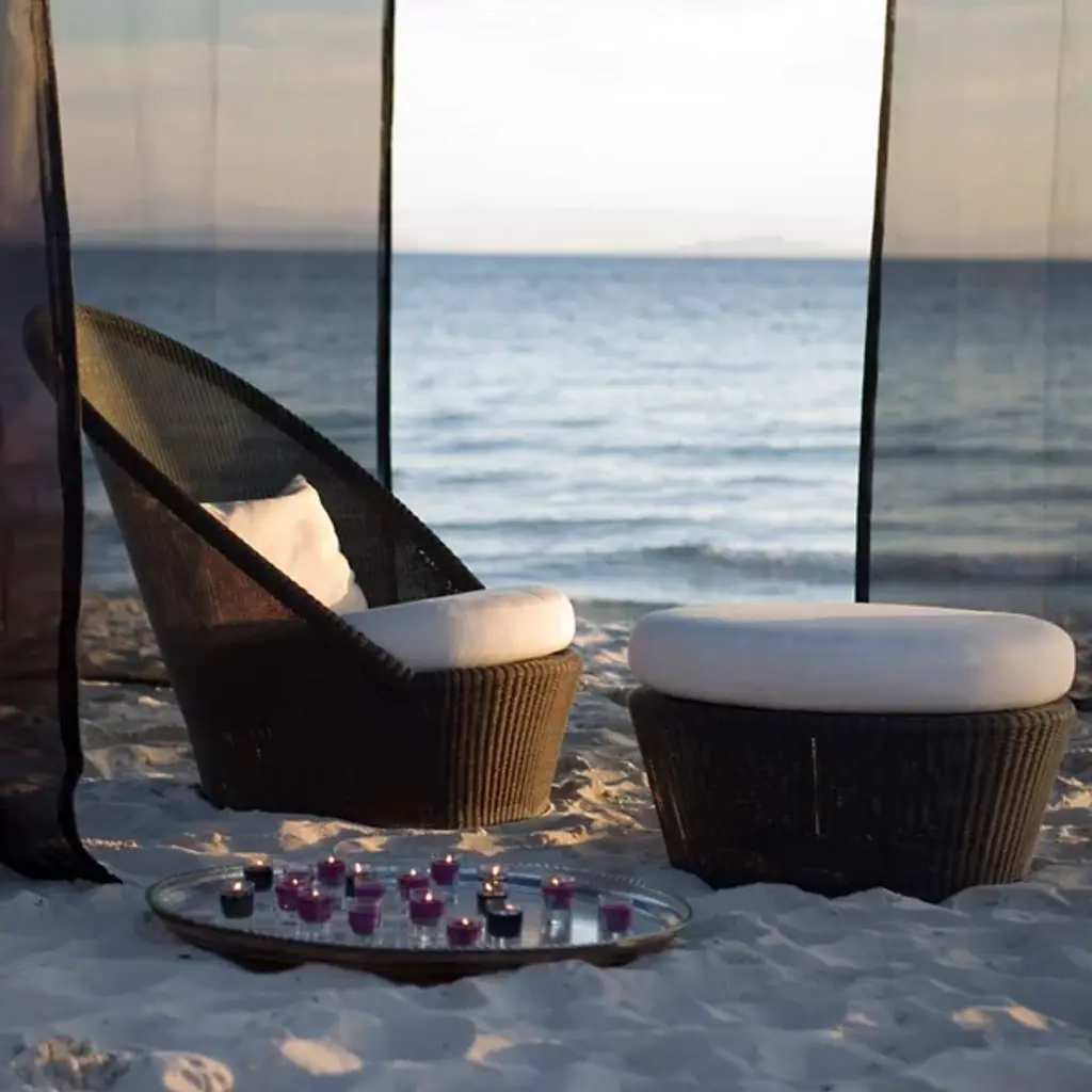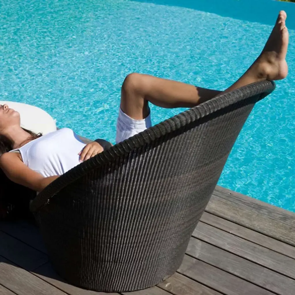 Finally, a proper throne for sun worshipers. The Cane-line Kingston Sunchair with Wheels is a luxuriously tall-backed lounge chair made entirely out of durable all-weather Cane-line Weave, with discreet wheels that allow you to roll the chair wherever needed to best enjoy the sun. And the weave itself is open and airy, allowing you to enjoy cool summer breezes from all sides.