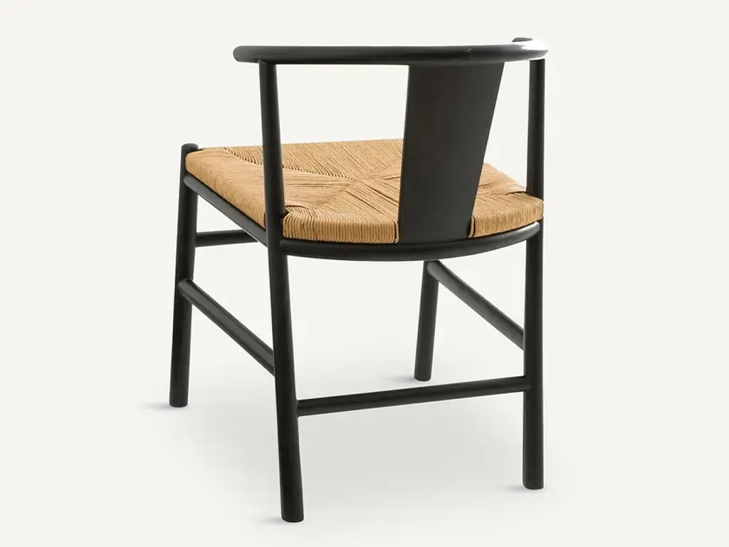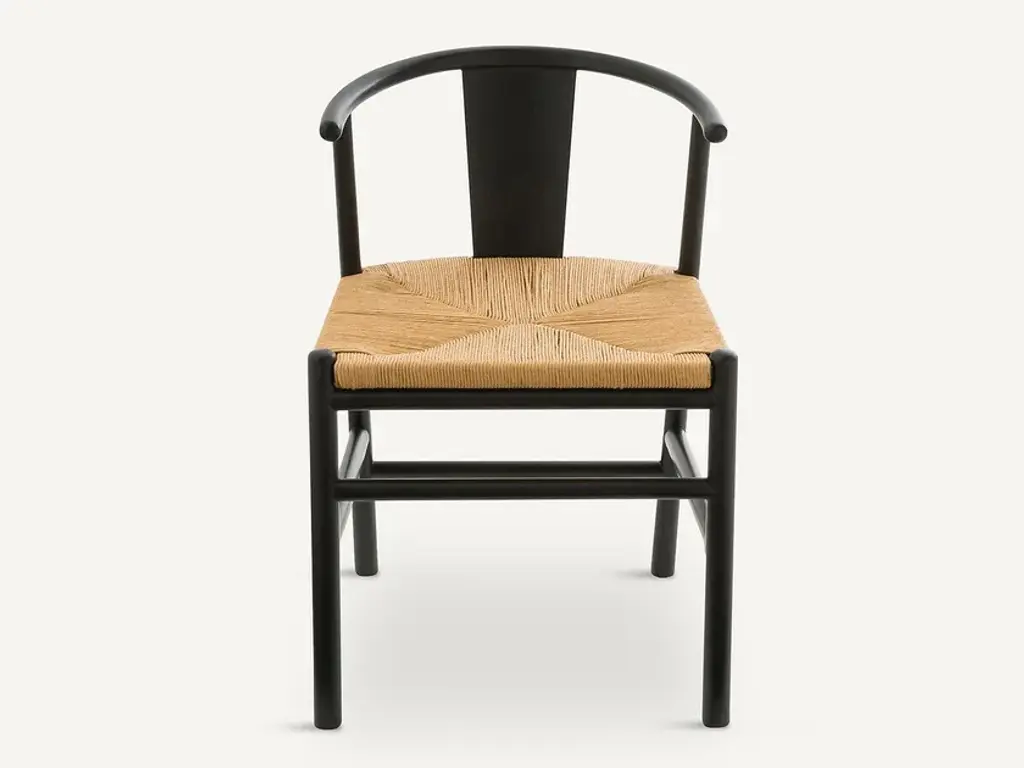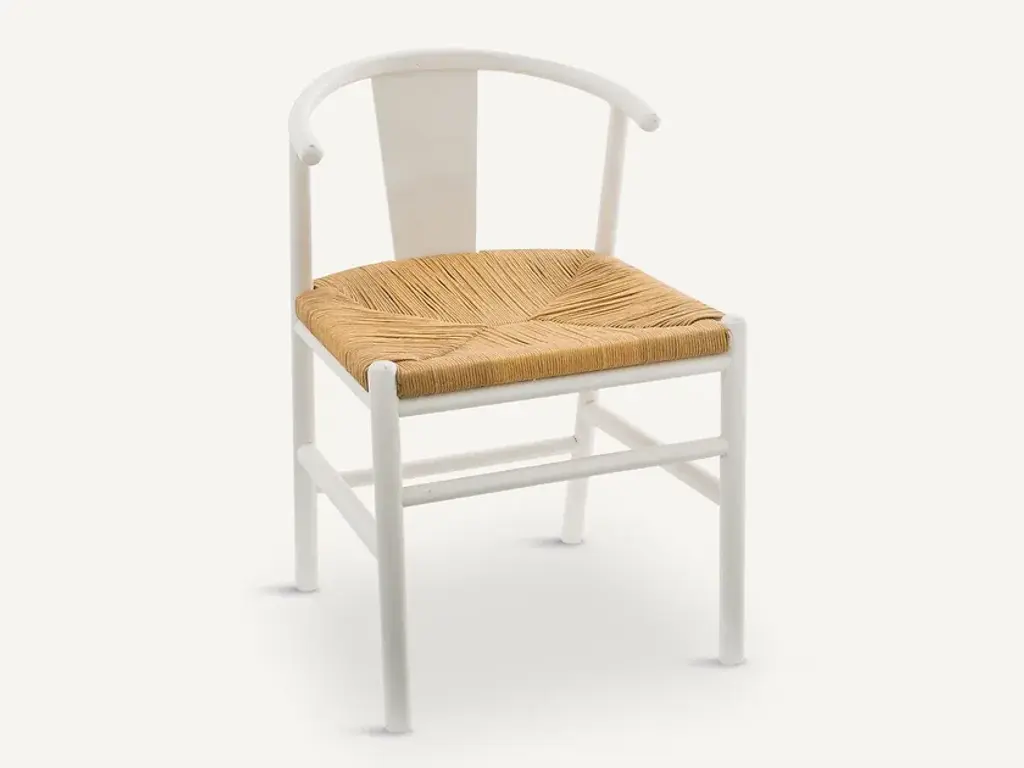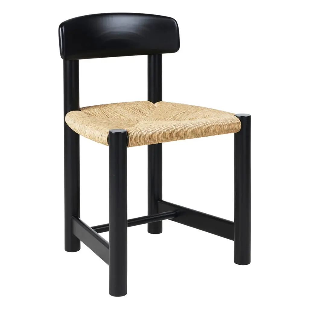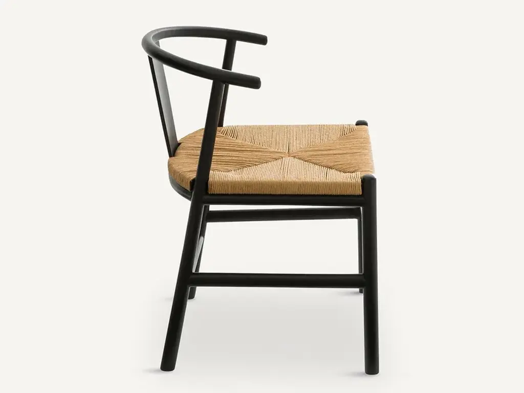 KIRSTI chair with an adorable woven seat, combined with a modern line for a cosy and comfortable chair. Birch frame, nitrocellulose varnish finish. Natural-coloured woven paper cord seat (a noble material used for chairs by Danish designers).