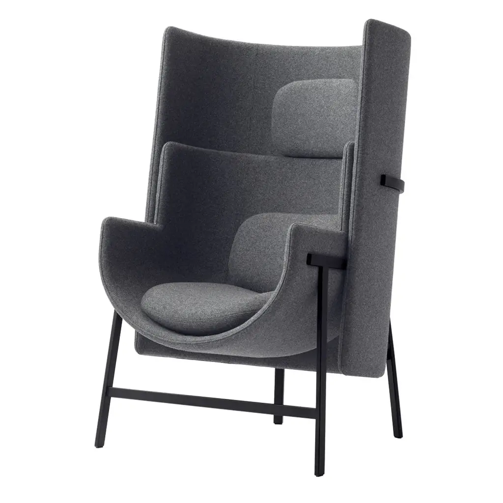 The Kite Highback Chair by Stellar Works is a casual, compact design by Oki Sato. Made with common spaces in mind, this chair creates a cozy, calm, and private space for its guests that is both comfortable and inviting. The tall backrest and artfully layered shell define the look of this piece, offering both back support to lean against and a curved seat to relax into. The seat and backrest are independent parts, making this chair easy to fit into smaller, narrower spaces with ease.