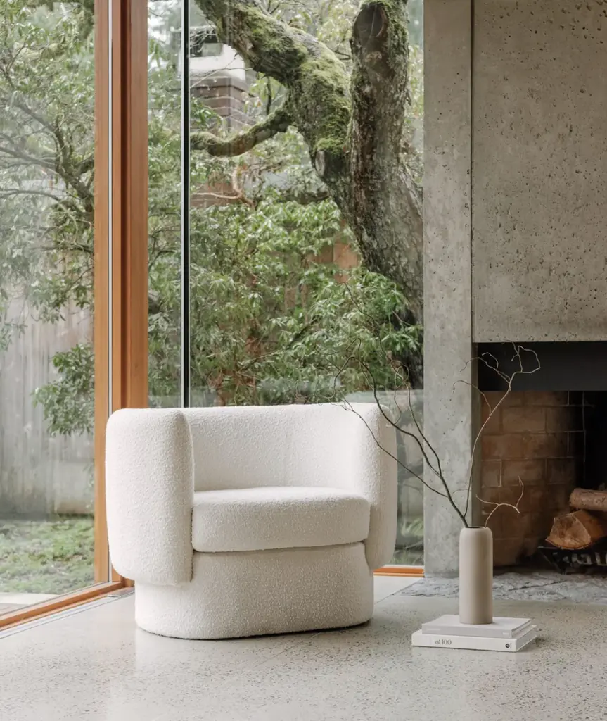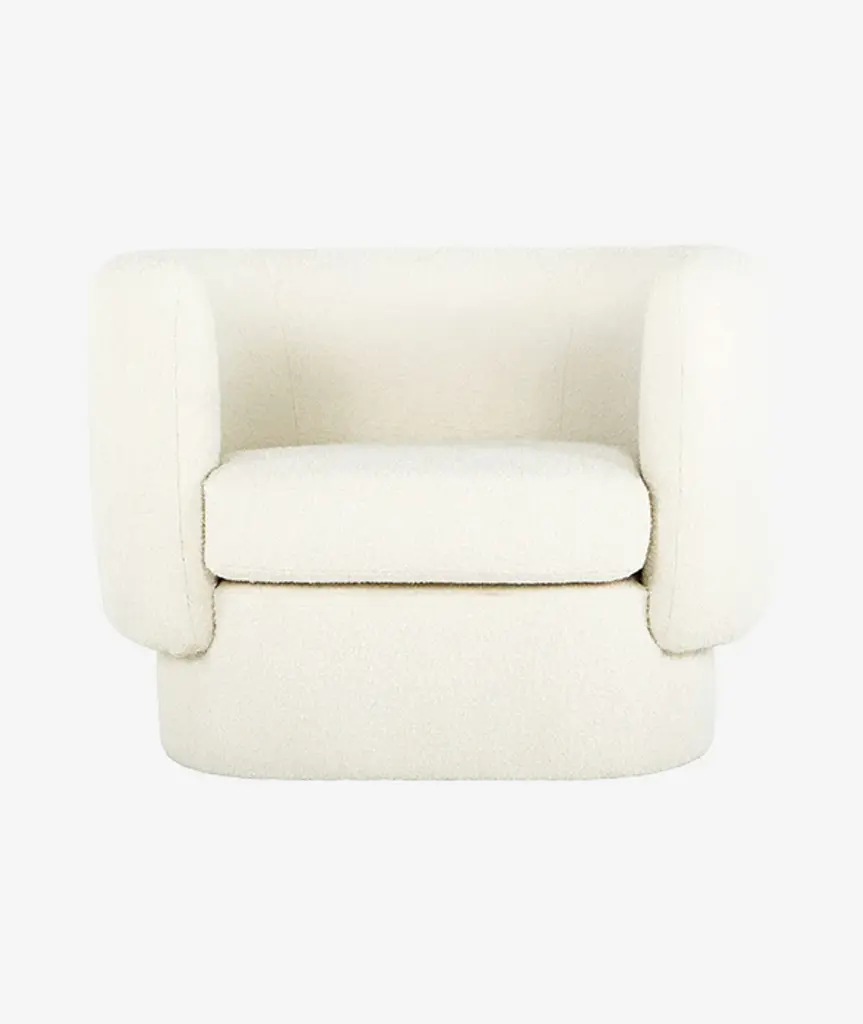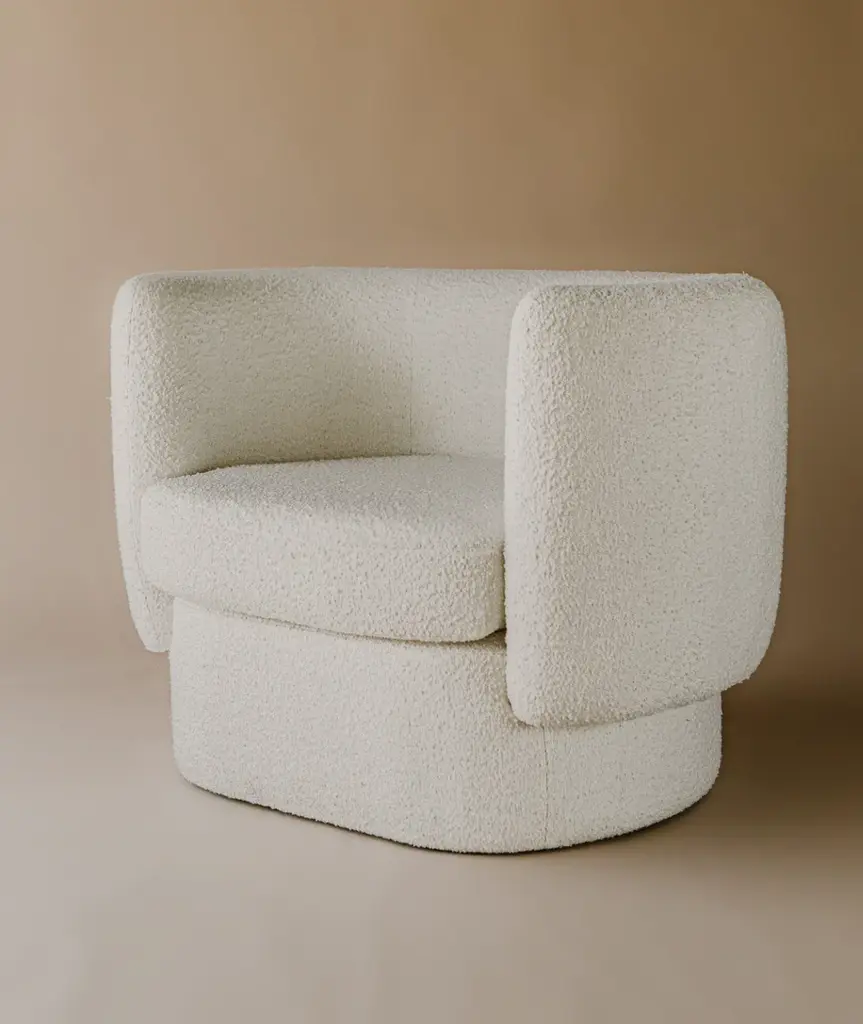 Like sitting on a cloud, the Koba chair comes in cream white with sumptuous form and curved lines. Foam filling, nozag springs, and solid wood construction make this seat soft and supple simultaneously.