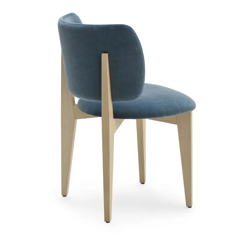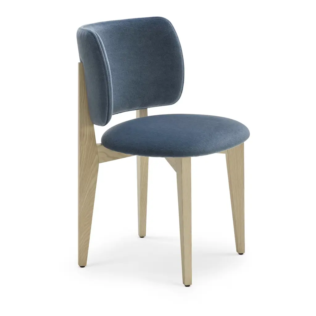 Ksenia +Plus is a chair made of sturdy beech wood, featuring a wide, enveloping back that offers exceptional comfort. The chair can be upholstered in fabric or leather, allowing for customization to suit various furniture styles. Designed by renowned designer Massimo Iosa Ghini, Ksenia +Plus combines elegance and functionality in a refined design.
