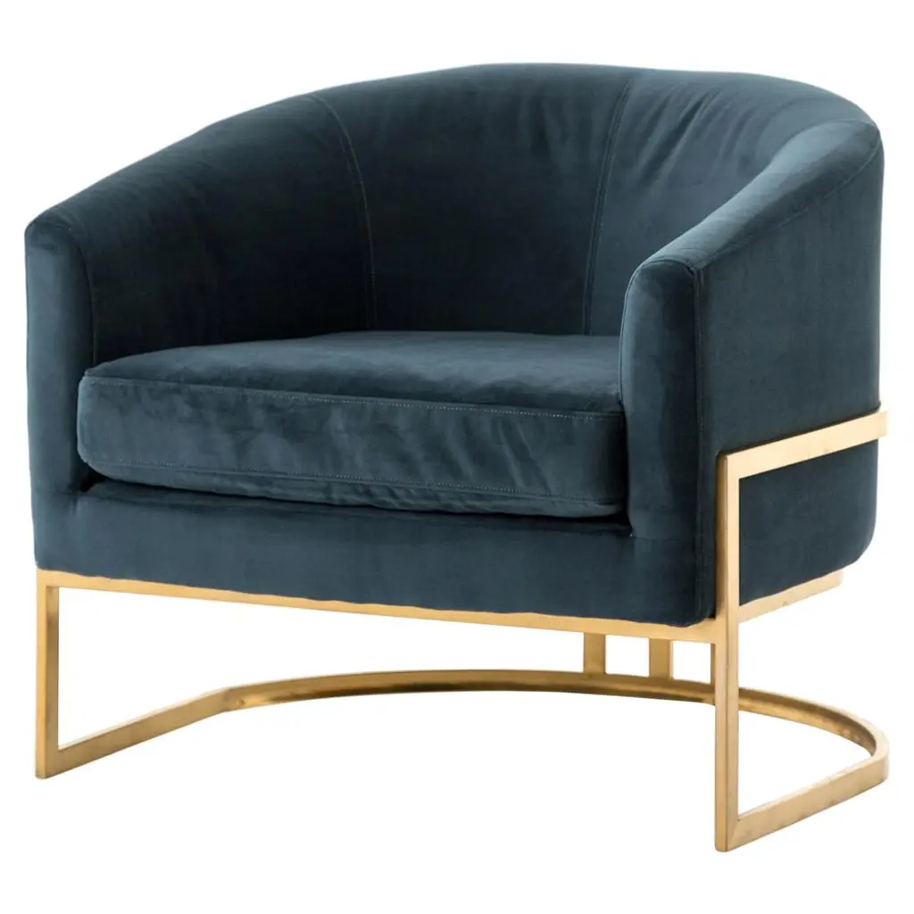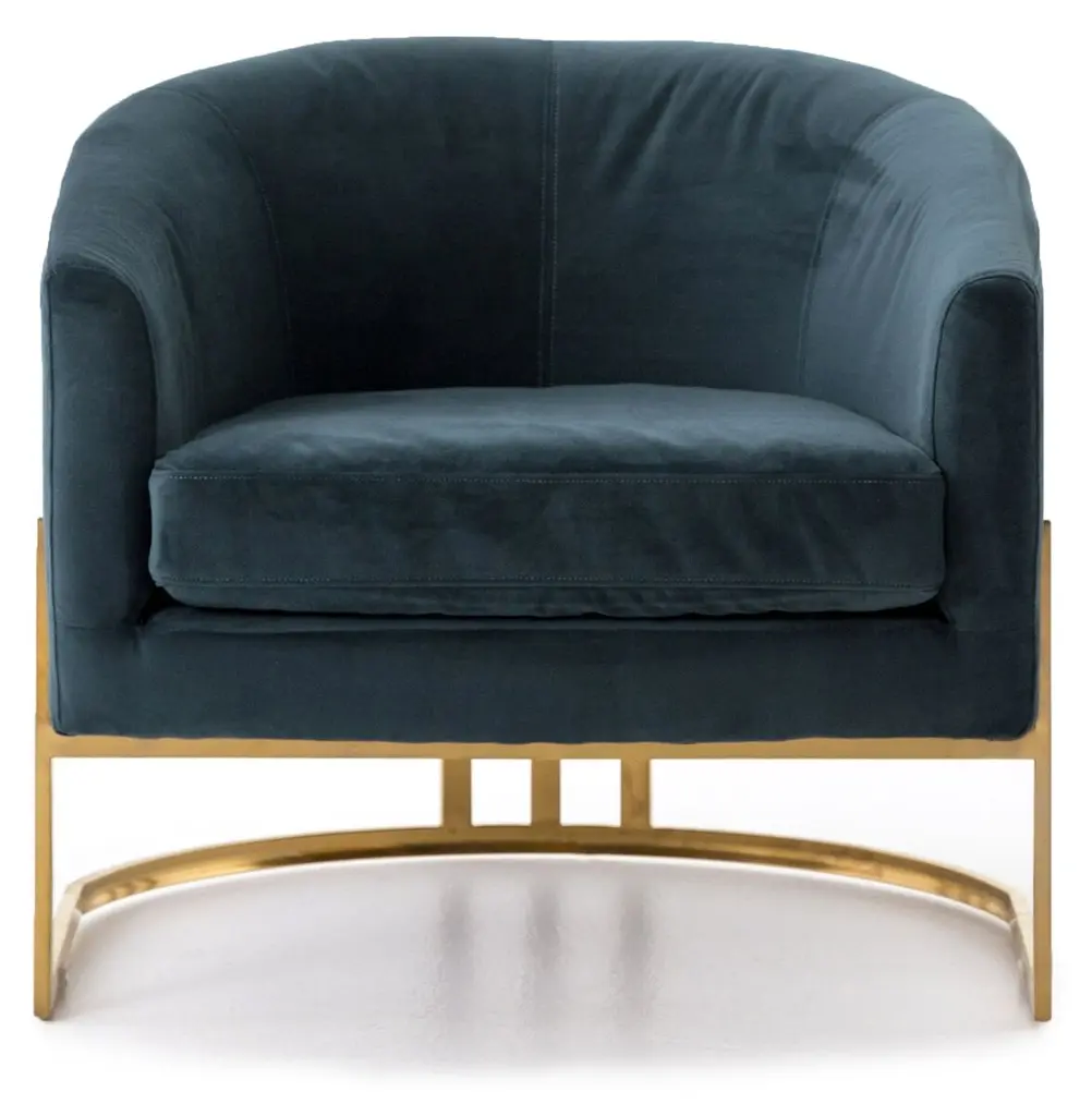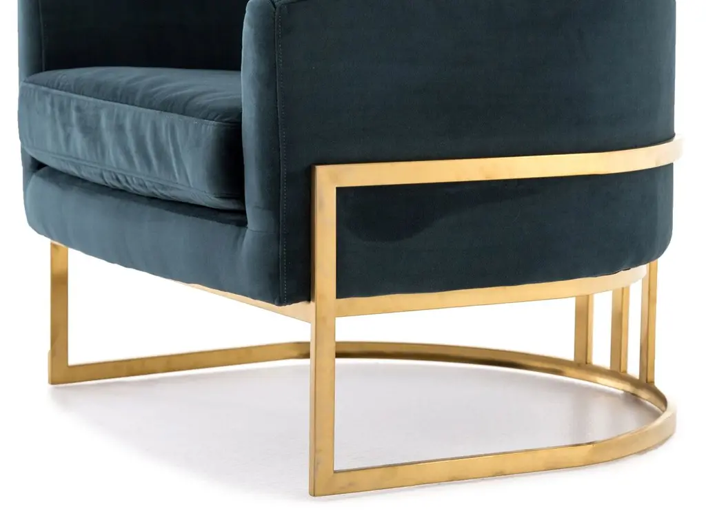 A satin brass metal frame ushers ornately seductive curves pretty enough to don as jewelry. Jasper-toned, polyester-blend upholstery lends a velvety feel and luxe look to mid-century modern seating with subtle swank.