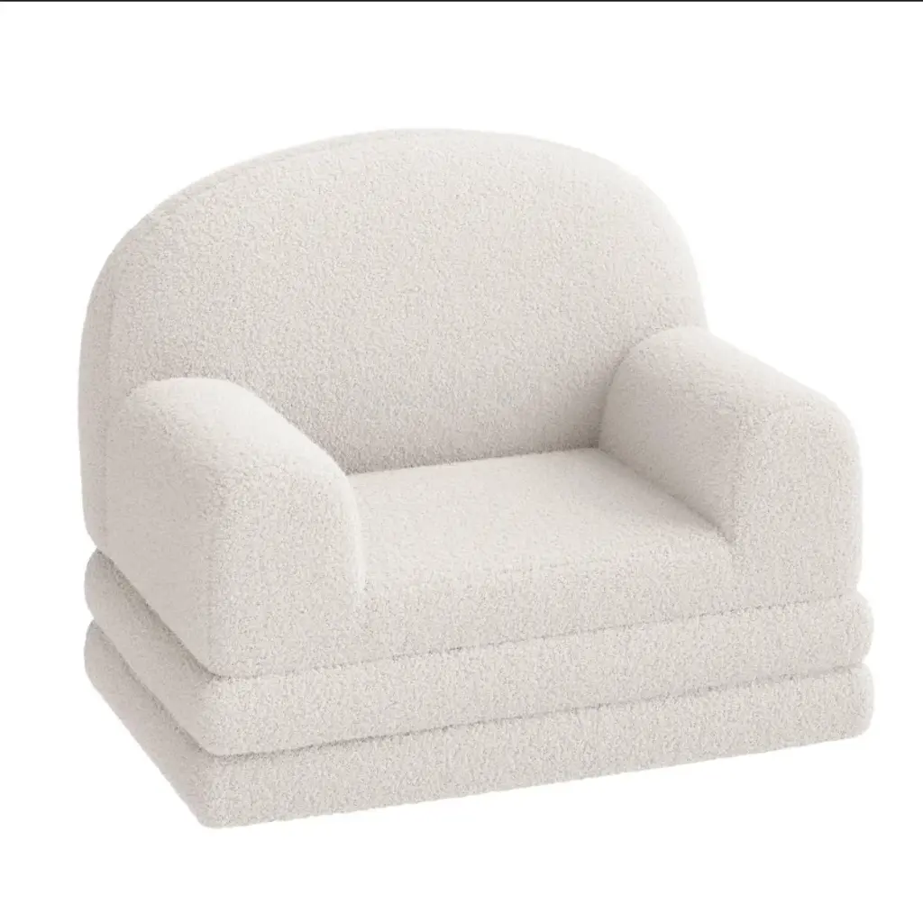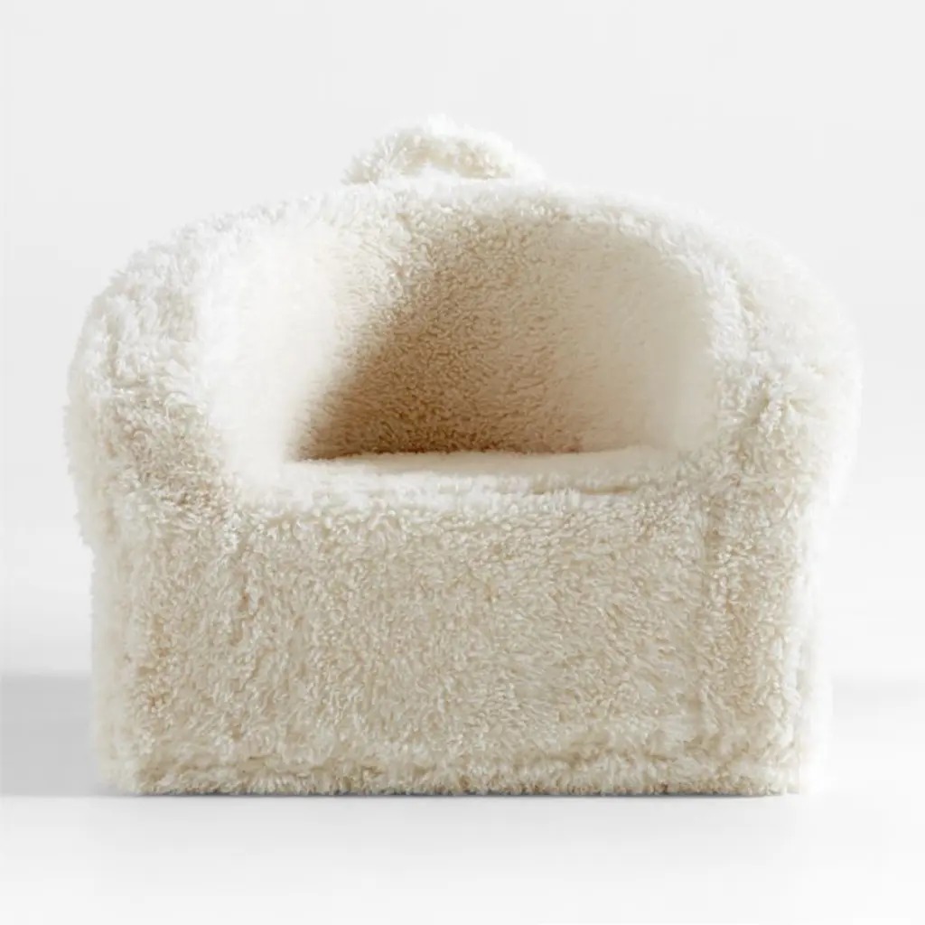 Large Cream Mongolian Faux Fur Kids Lounge Nod Chair