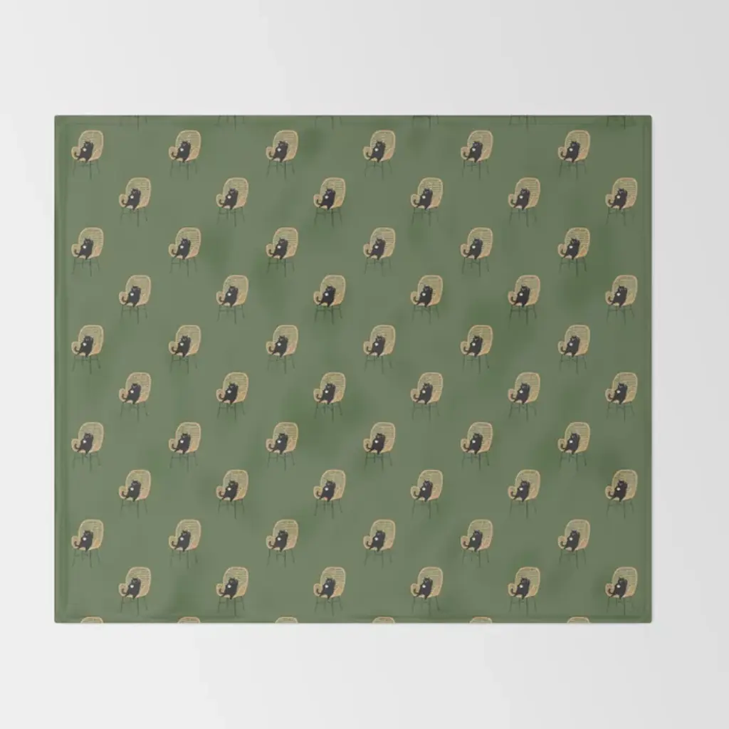 Lazy Cat 2B Green Enjoy Coffee On Rattan Chair Art Print