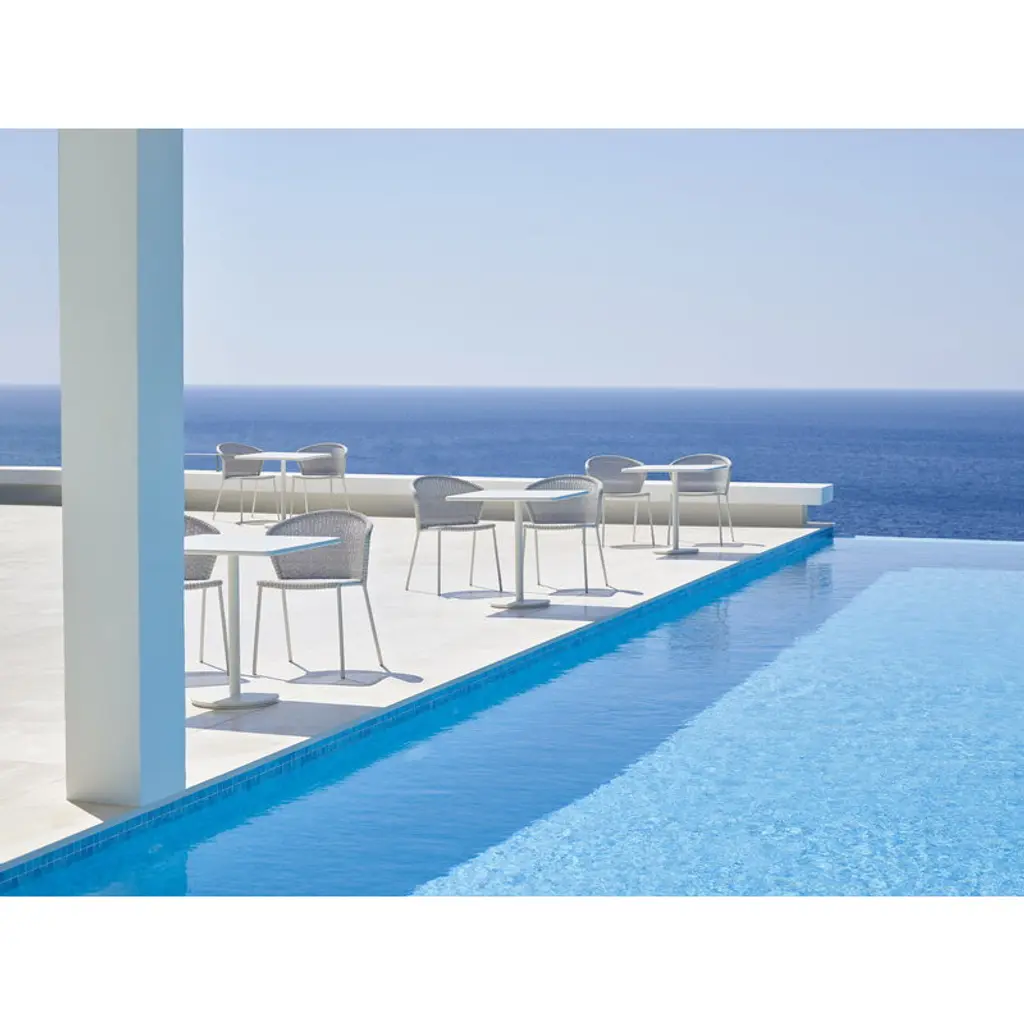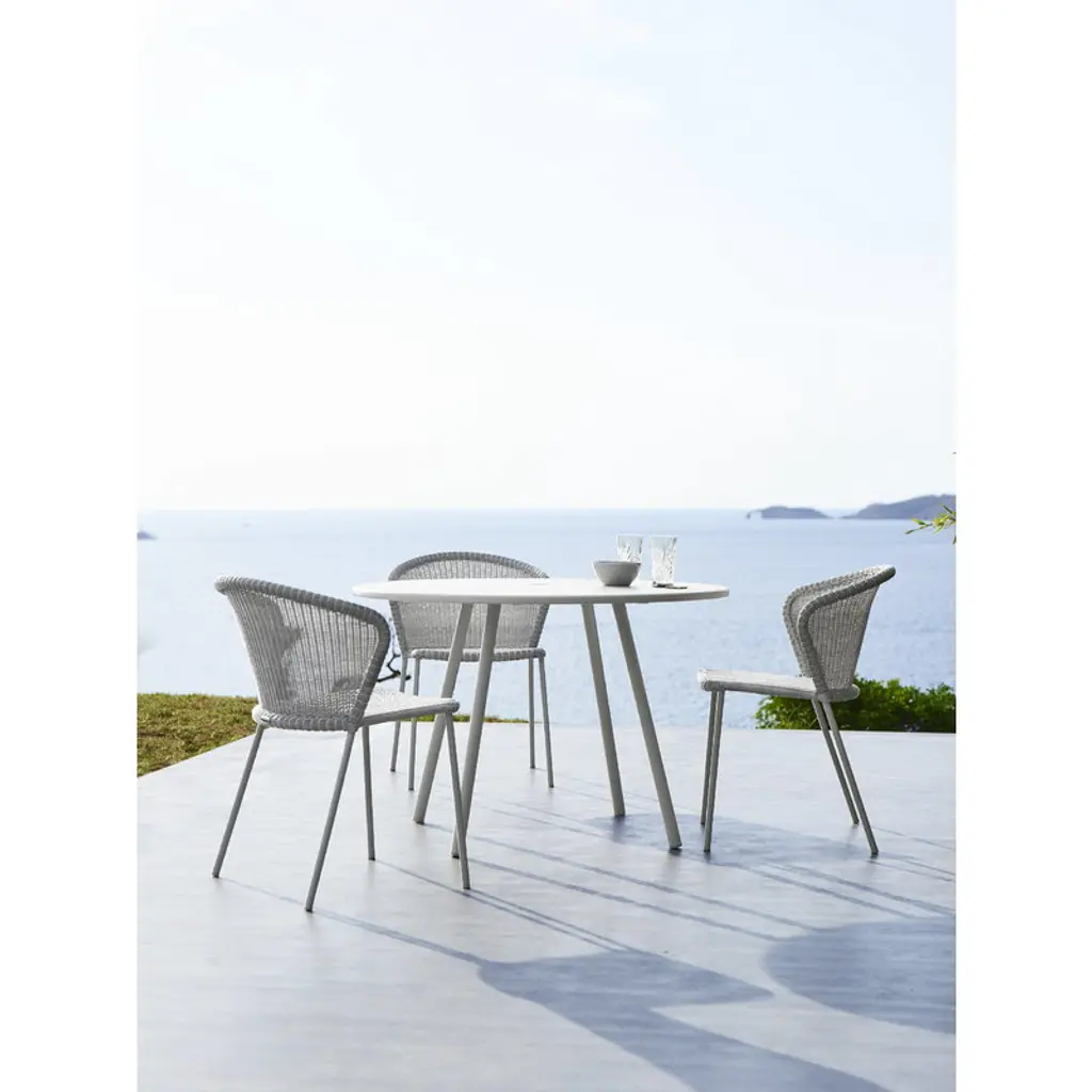 Lean chair by Cane-line brings a characterful touch of modern Danish design into the terrace, balcony or garden. Shaped by design duo Welling/Ludvik, Lean chair consists of a tube frame with a curved backrest and a woven, slightly transparent seat that gives the chair an airy appearance. Polyethylene fiber makes the chair maintenance-free and resistant to UV rays, fade, and weather. The lightweight Lean chairs are stackable and can be stored in small spaces.