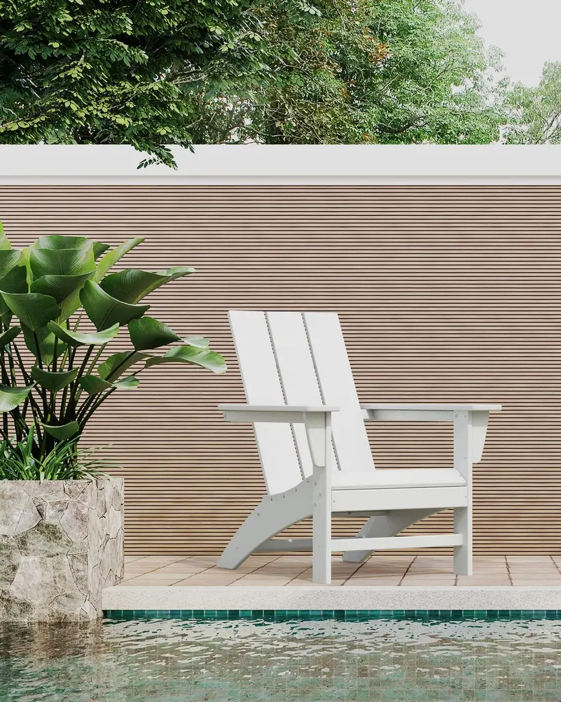 A contoured seat and a waterfall front make this version of the classic Adirondack chair even more comfortable than the original. It's made in the USA of eco-friendly synthetic lumber that will resist splintering, cracking, peeling, and chipping for years to come.